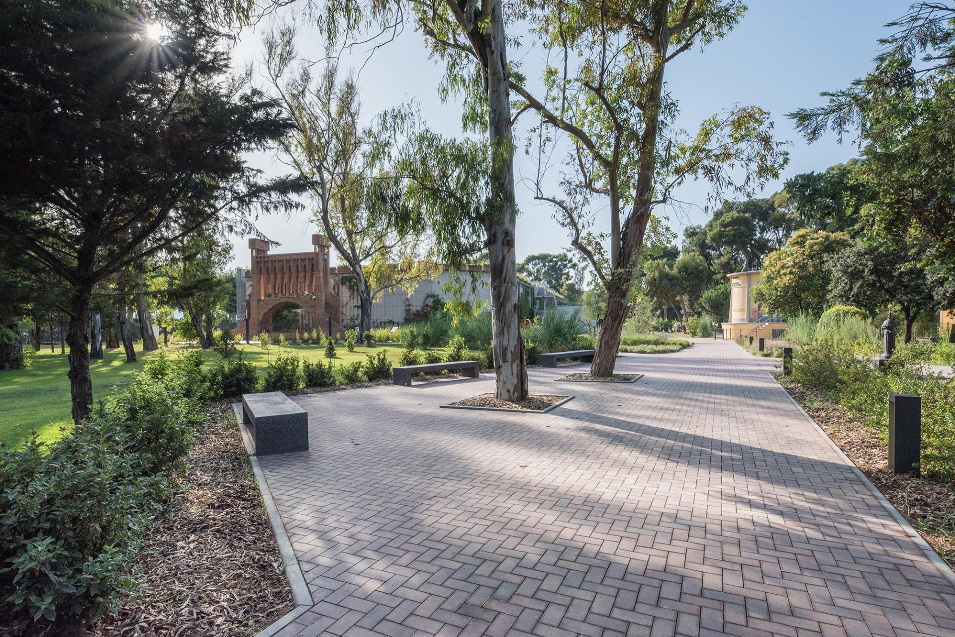 The Industrial Garden (48.770sqm): Landscape restoration is designed giving a structure to the garden, the existing and the new paths, improving the circulation and diversifying the mobility for Museum visits and personnel. It is also renaturalised to favour biodiversity and drainage is carried out with sustainable infrastructure systems.