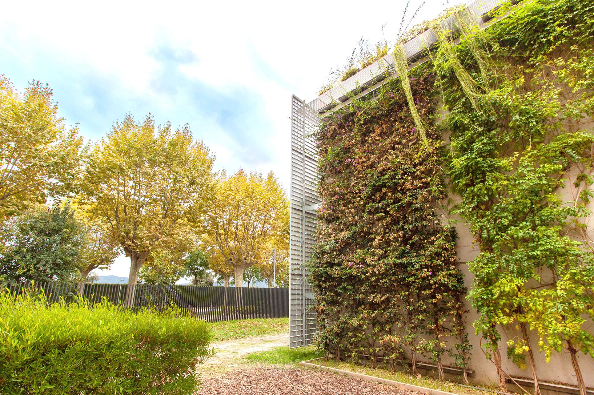 Landscape integration of the existing water tank (3.000sqm façade): The building is in front of the car park and the objective is to design a corporate façade and integrate with the green environment with a biophilic vertical garden.