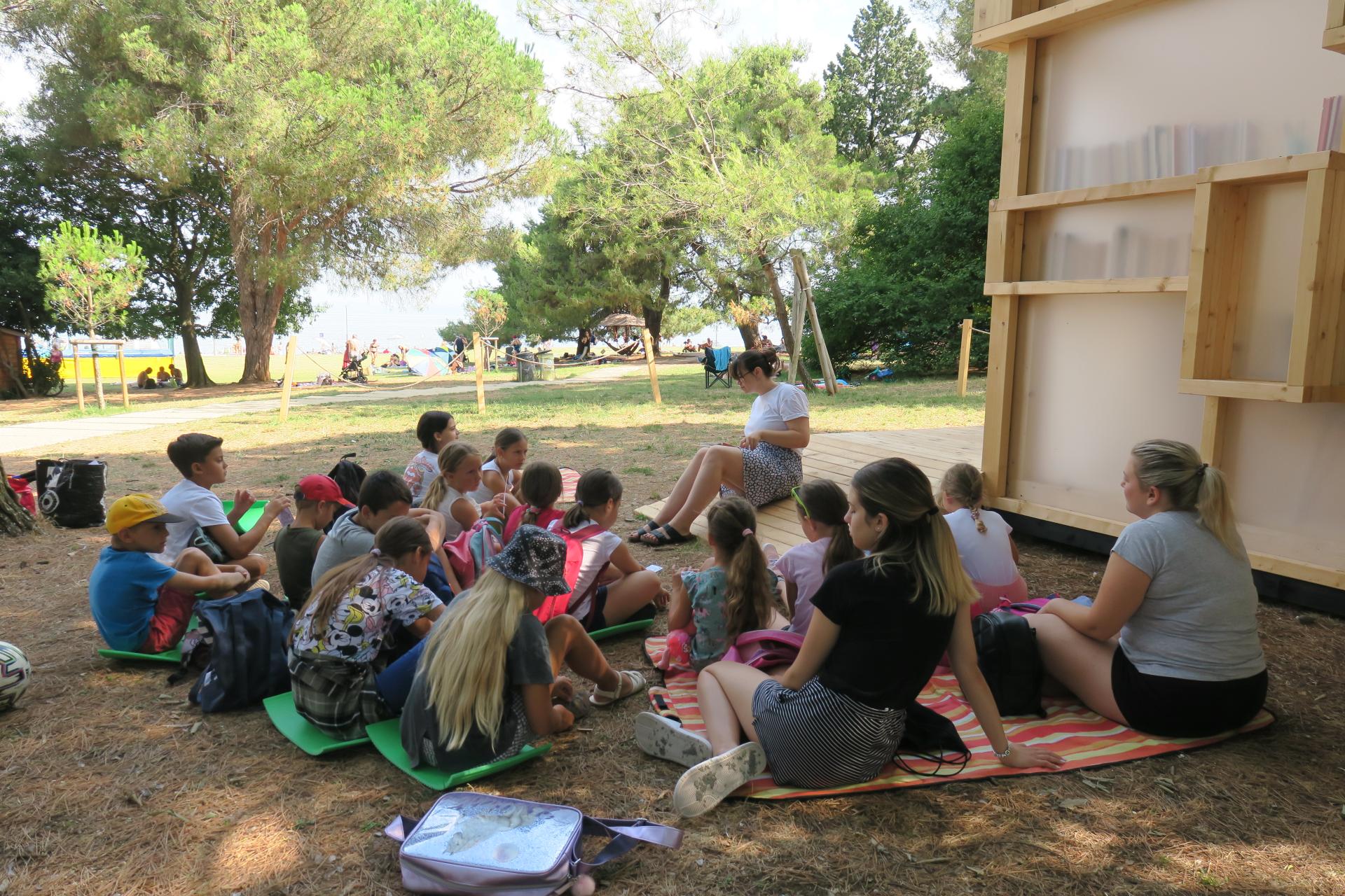 The space of "My reading room", in a pine forest in Izola, was visited by 7,176 young and adult visitors from 7th July to 30th September 2021, who borrowed 2,704 books. Students read fairy tales to children on a daily basis. A total of 96 fairytale hours with workshops were conducted. The fairytales were chosen from the treasury of folk tales, and they were listened to by children but also by parents, grandparents, tourists, beachgoers and passers-by. Every Tuesday afternoon, the storyteller told fairy tales about trees and the forest, raising awareness of the importance of trees as living beings, important for human life, the planet and our future. On the occasion of World Language Week, in the last week of September, the Municipality of Izola, the Italian National Community of Izola, the Center for Culture, Sports and Events and the Izola City Library took part in 28 EUNIC Reads - EUNIC Reading meetings organised by French institute in Slovenia with partners. In the process of creating this newly interpreted urban point on the beach, with art-installation as an idea of public space design, we encourage public debate, which through the network of international groups promotes and support the global debate.