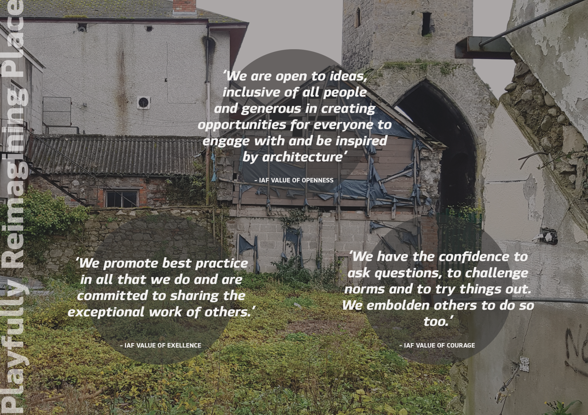 Playfully Reimagining Place is an initiative of the inaugural Irish Architecture Foundation's (IAF) Graduate Panel, a group of graduate architects, aged under 30, forming a collective voice through a process of peer learning in order to contribute to shaping a beautiful sustainable future.