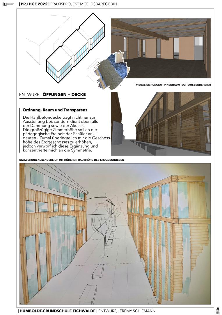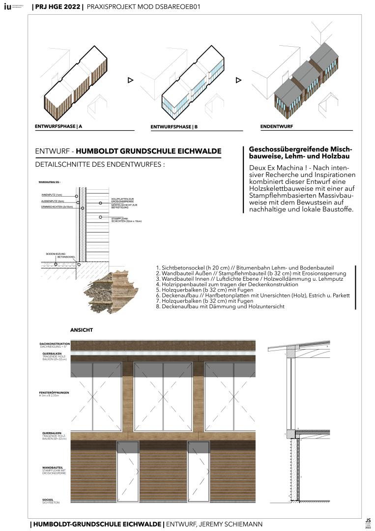 Eichwalde is a suburban municipality with buildings up to 1-3 floors - I wanted to keep this dimension in mind and designed a skeletal timber-construction in the 2nd floor of the building wich should also highlight the diversity in materials that can be used to create ecological architecture.