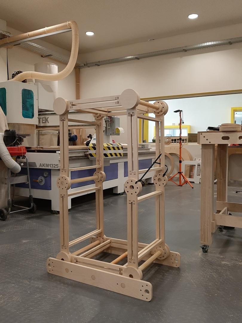 ‘Participation on Wheels’ (PoW) is a transformable multifaceted construction, designed to enhance the process of a participatory action in public space. It consists of a modular unit that includes frames to which different surfaces fit. This modular unit is repeated six times to form a dynamic structure that can be transformed to serve the multiple stages of a collective action. The frames are connected to each other by joints that allow them to move freely in one direction. The movement of the frames is stabilized with the help of nodes that secure the connections of the modules at specific degrees. Thus, with the appropriate rotation and by adding surfaces, the construction is transformed into: a cart that transports the equipment used in each public event or workshop, a ladder that exposes the tools of the workshops and provides information on the type of action being carried out, or a workbench for planning, mapping and filling in research forms. The workbench is adapted to more than one height, facilitating the participation of younger people or adults. The concept of the project is inspired by the aesthetics, the scale and the ingenuity of wooden play structures and installations and the design principles are informed by participatory planning theories. Μore specifically, the form of the ladder symbolises the 'ladder of participation' and its mobility reflects the fluidity of participatory processes, as attributed to the 'wheel of participation'. The idea of this construction is to function as a core of participation and as a tool that facilitates community building processes through collective practices of exploring the social and spatial qualities of neighbourhoods. The ultimate intention is to activate passive attitudes towards urban commons, to challenge existing planning and to achieve more inclusive ways of engaging citizens in urban planning issues. Its presence encourages curiosity and openness to new creative approaches to participatory urban actions.