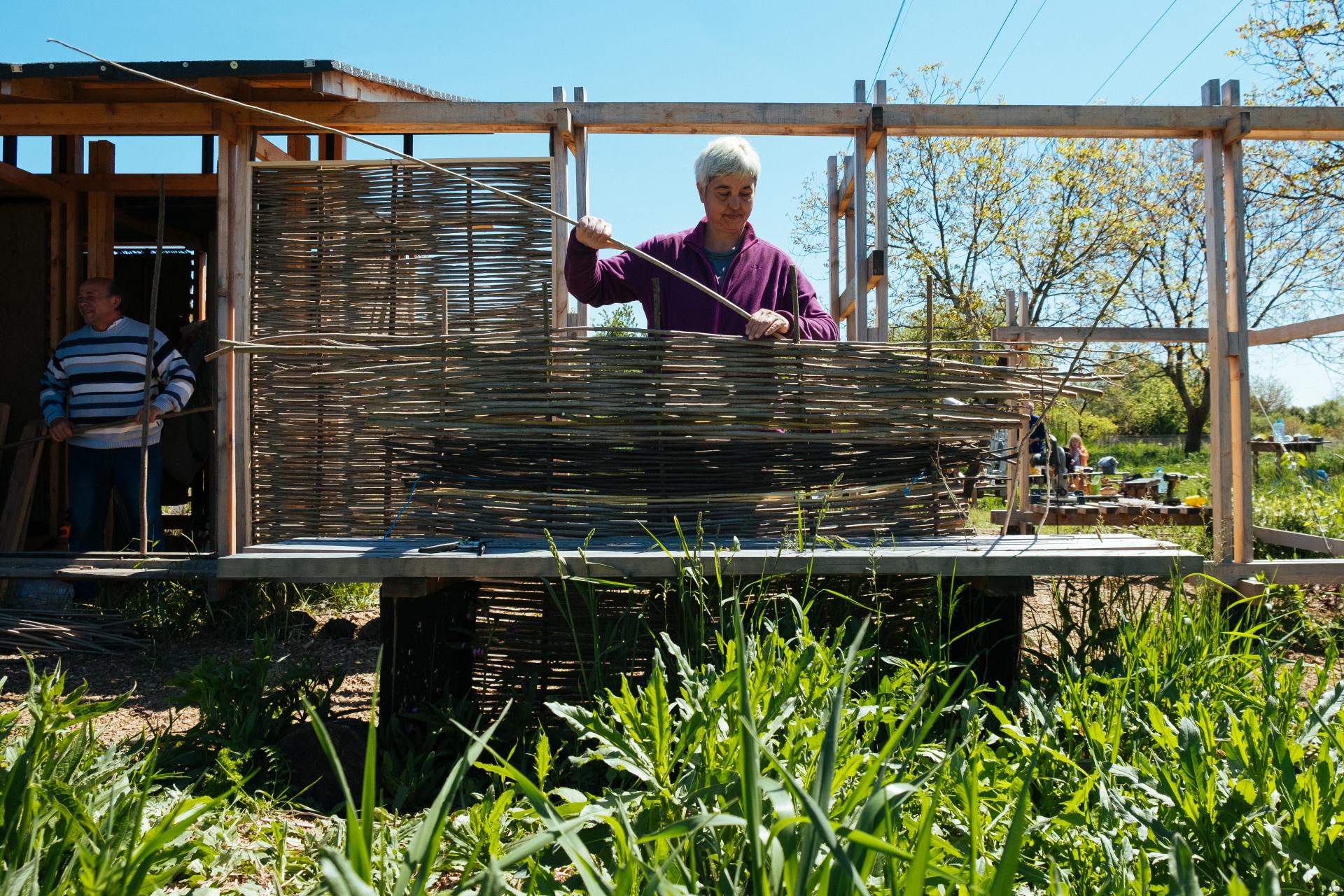 Also, the knowledge transfer was done through hands-on community activities reminding participants of the local traditions of our ancestors like “claca” and “șezătoare”. For example, one very successful workshop was to extract and mix together the local earth and straw in order to plaster the wattle & daub walls of the pavilion, which is the gardeners’ gathering place. Such events are a positive means of bonding as they always turned out to be a great occasion for chit-chat, fun and laughter. The crop surplus from the urban gardens became an occasion for exchange among gardeners or for a collective cooking activity. “Goulas” and “zacusca”, which are traditional dishes that take hours to cook, became a Greenfeel social event that invited community friends to join. Overall, these are good places to exchange products, know-how and memories of our rural past that taught us how to live (think, cook and build) connected to nature. These places are nurseries of plant resources, minerals, know-how, good vibes, socialising and memories.