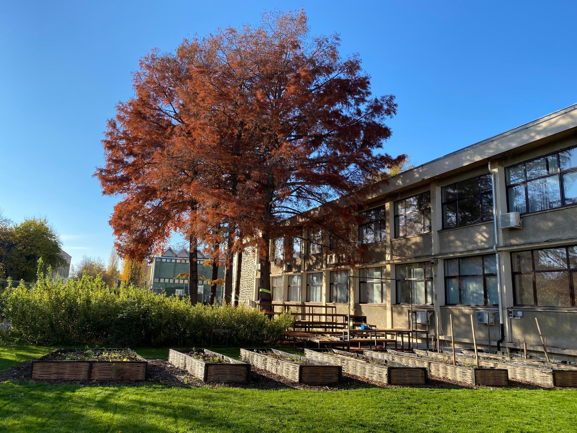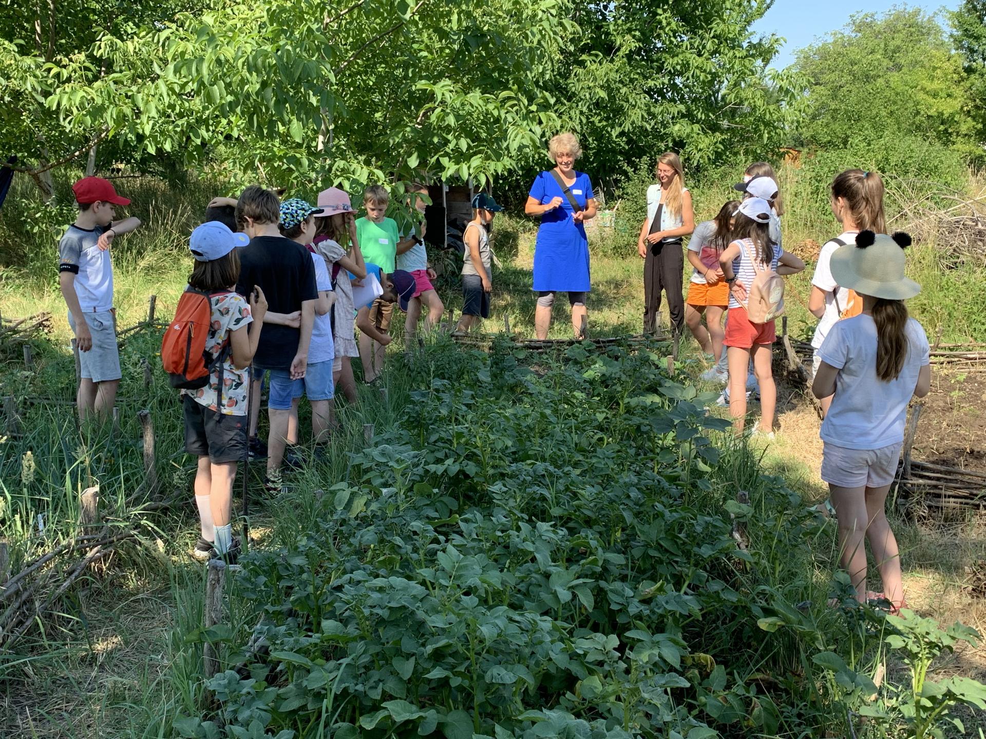 Remediation: the nature component was enhanced with pollinating species, local climate-adapted fruit tree varieties, nourishing and technical polycultures (wicker, hazelnut, straw, flax) and composting was introduced, thus integrating nature-based solutions. In improving the infrastructure and furnishing the adaptable educational spaces, recovered materials were used (furniture from old pallets and discarded wood, permeable paths covered in wood mulch from city tree trimming). Rather than being replaced, existing construction elements were integrated in the concept.