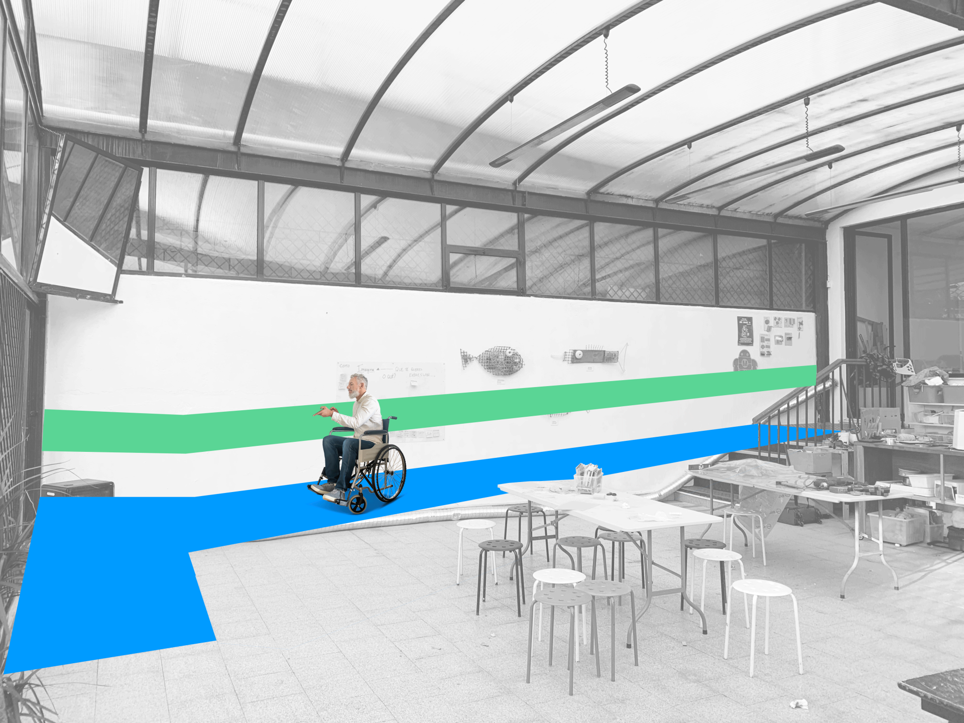 2) Adapted for local FabLabs and other partners; making those spaces more accessible with the necessary minimal interventions such as circulation, communication/signs and accessible gadgets.