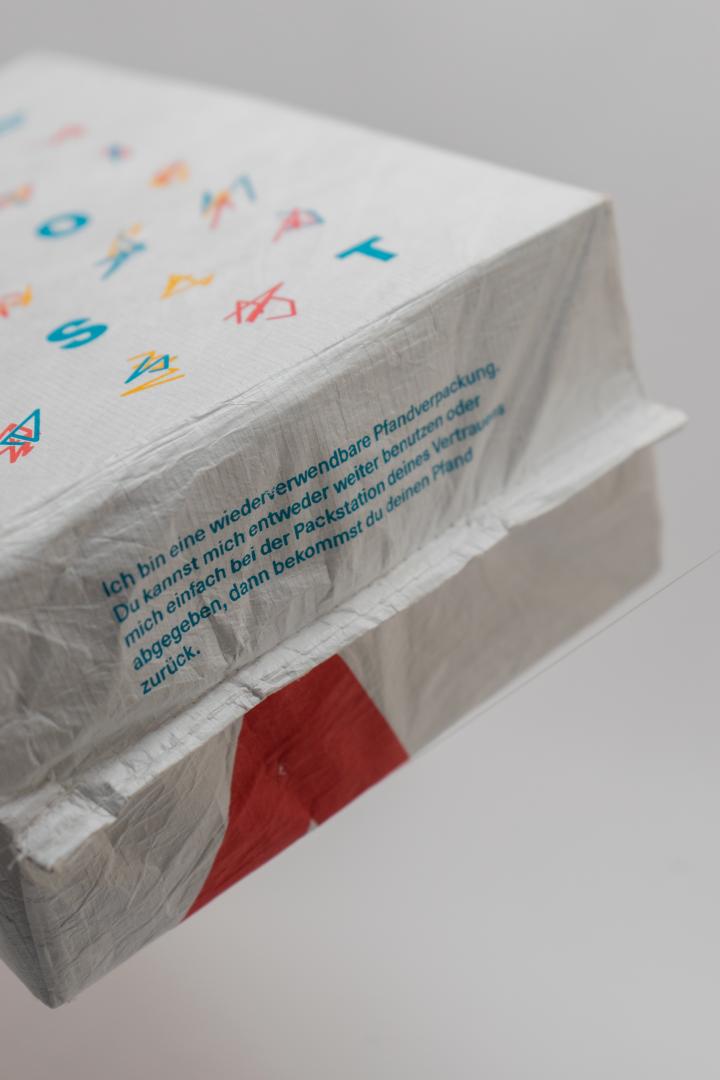 After receiving an order in the new packaging the customers take out their goods and return the packaging to the nearest mailbox or parcel station. The boxes are collected from there and distributed to the nearest online retailers, who reuse them to package their next orders. A deposit system encourages customers to participate, similar to the German practice of returnable bottles.