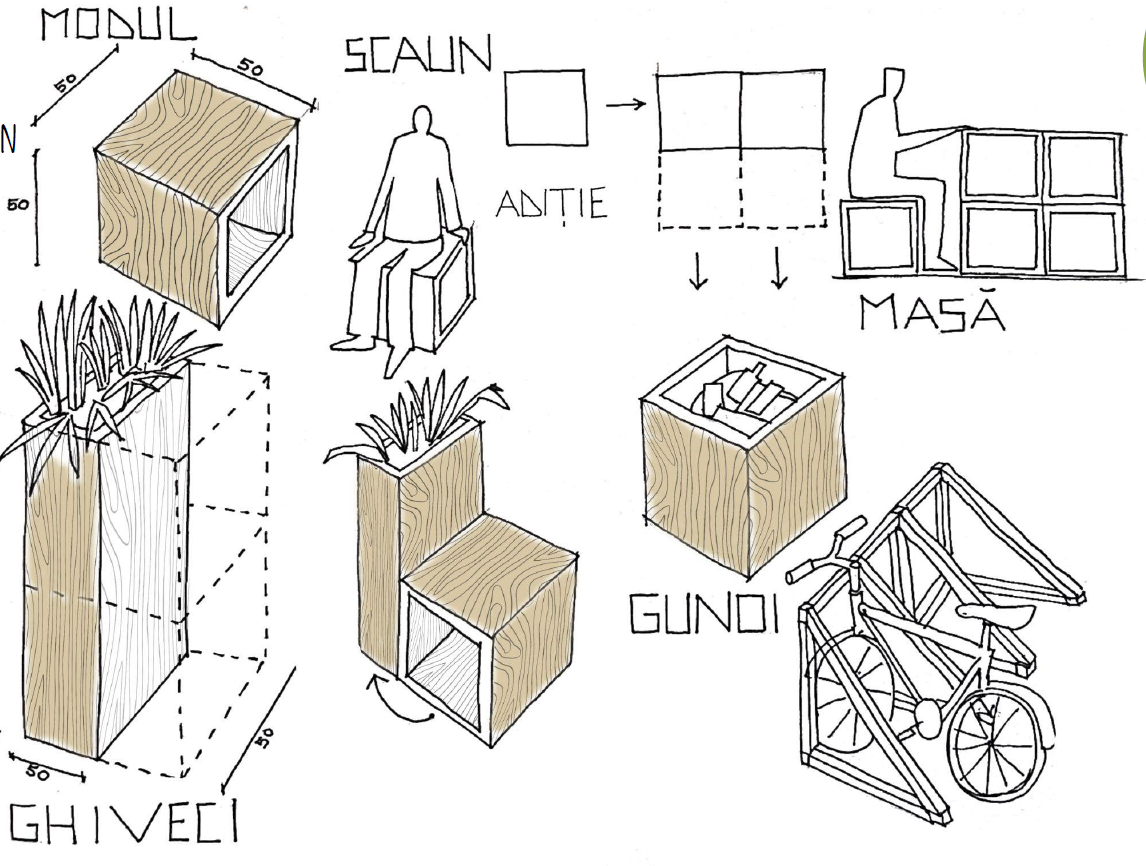 Already from the designing phase, an active collaboration process with community representatives is kick-started. One kit must include specific pieces for the predefined objects. For deciding what objects are the most needed and most generally useful, we need to have consultations with the community these kits are supposed to be produced for. The assembling and installation of the furniture, supervised by a specialist, are meant to be a way to bring people together, regardless of generation and background, and have them work for a common interest, negotiate, reach a consensus and get involved in shaping their community space, therefore reclaiming it. Moreover, the design enables a low-cost implementation (up to 1000 EUR/standard kit), therefore providing an opportunity for marginalized communities to improve the quality of community space. In the pilot project, the kits and the supervising professionals are going to be allocated to up to 5 associations free of financial costs.