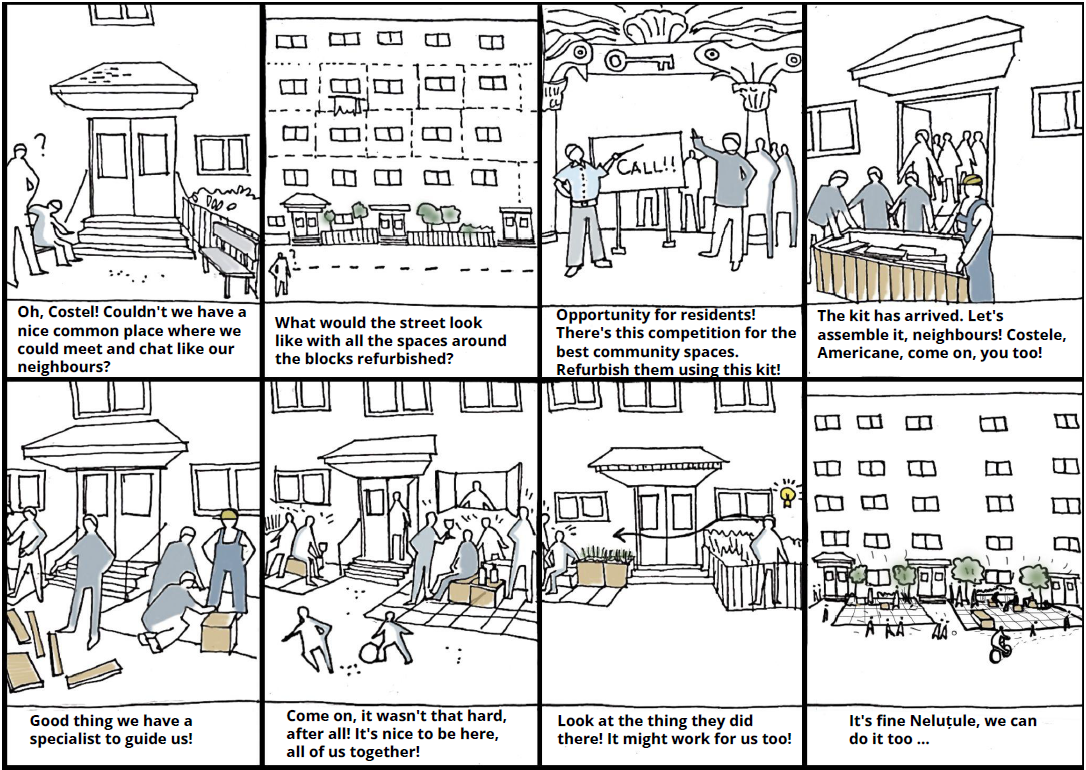 UnBlocKit aims to integrate all three aforementioned dimensions using simple means, compressed in one single physical instrument and a well-organized, easy to understand implementation process. The integration of all three core values in the conception of the solution could translate into an immense potential of replication in other cities and Eastern European countries as well, making it a sustainable transformation tool in the widely met community spaces that are adjacent to collective block housing.