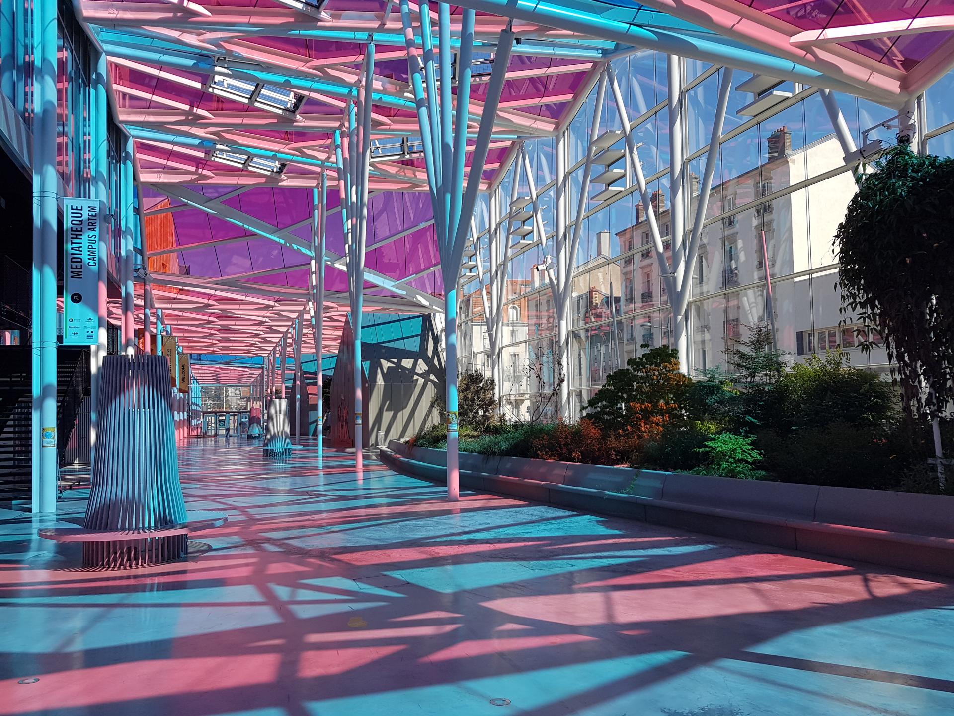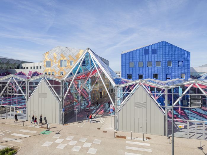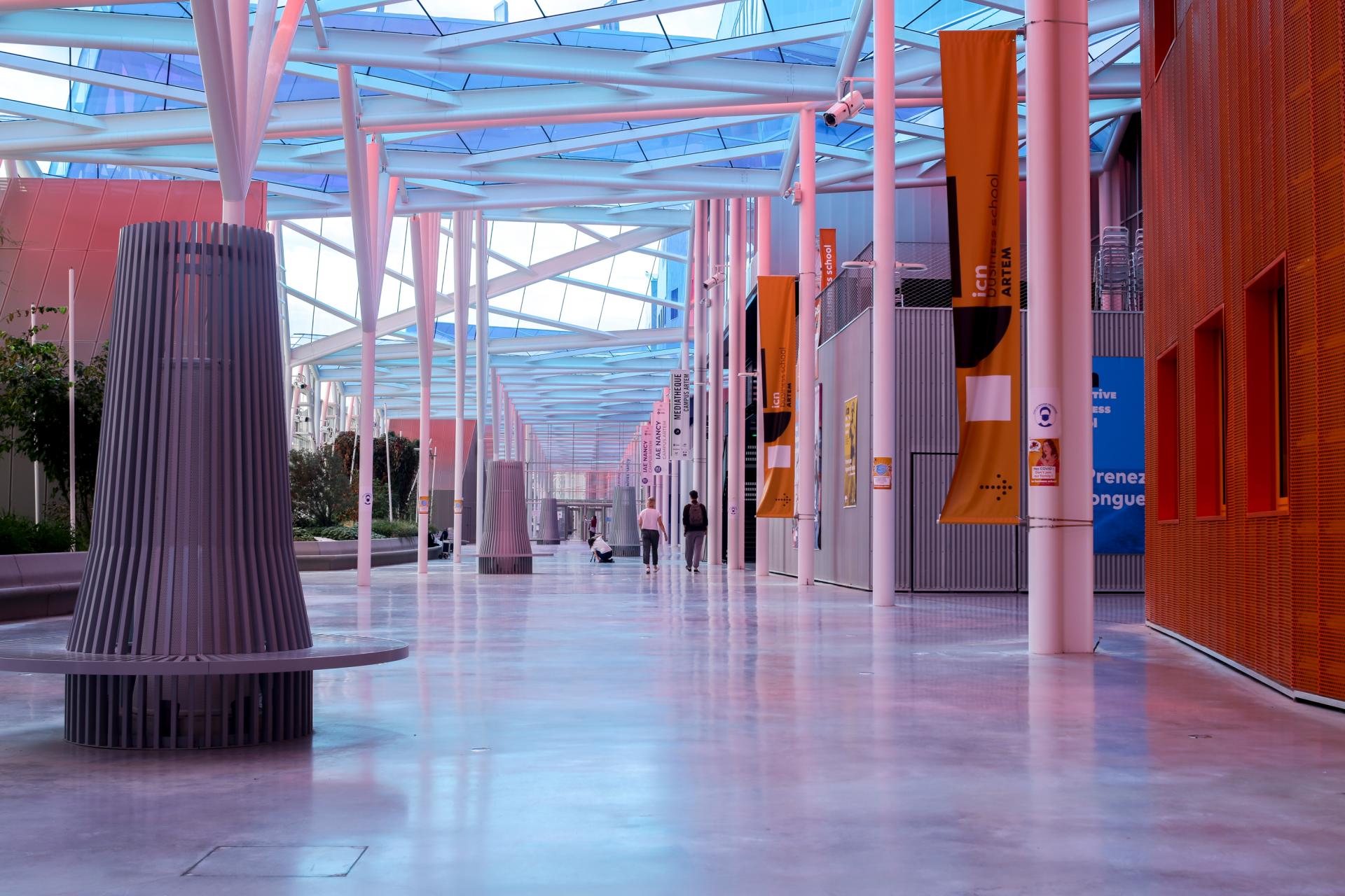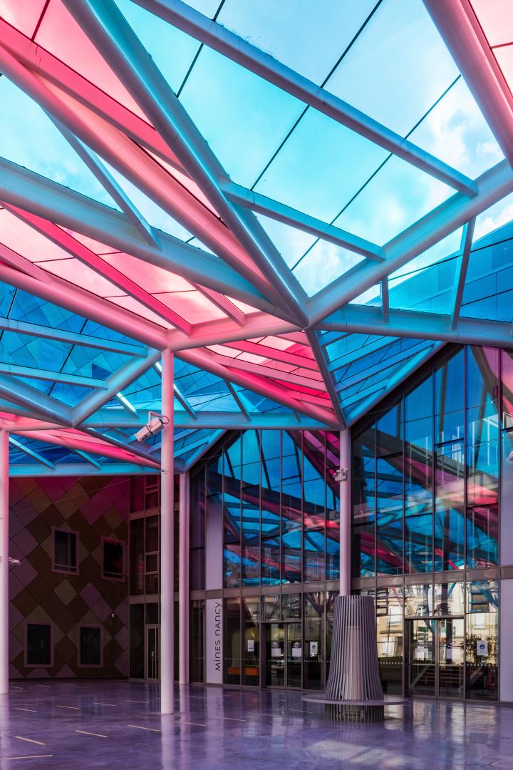 The Artem Campus is 97,000 square meters and it’s also an impressive gallery in pink and blue colors, whose glass roof design echoes the dynamics of the search for innovation and the association of different techniques, inspired by Nancy School. It offers a new form of public space linking all the components of the campus via a 300-meter-long urban promenade. This Gallery project is the very illustration of the spirit of Artem and is intended to be a place of exchange and mixing of students. This gallery gives a unity of place and breathes an Artem spirit. It is designed in the continuity of history and plays a structuring and unifying role through the establishment and connection of schools and shared facilities. Each school giving rise to the Gallery retains its own uniqueness and identity. Symbol of Artem, the Gallery is a cosmopolitan and spectacular space.
