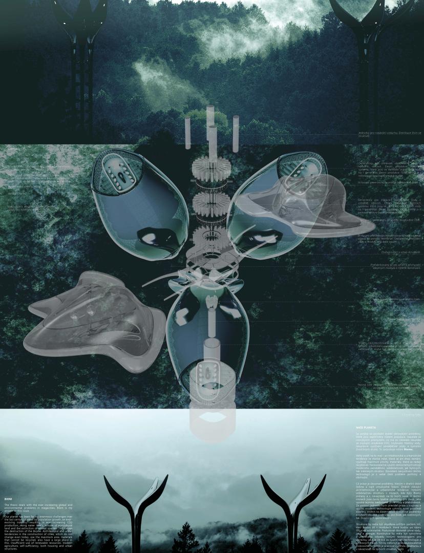 Our planet has been facing enormous challenges over the last century, caused by population growth, an ever-evolving industry, resulting in ever-increasing CO2 production, rising water levels, misuse of agricultural land and the extinction of animal species. This causes the destruction of the Biome. Architectural and urban tendencies in the construction of cities, which do not change even today, use the maximum area, materials that cannot be recycled, also have a large share in this. Insufficient use of renewable resources, modern agriculture, self-sufficiency, both housing and urban structures. The reason for not using these technologies is largely a political and commercial problem. The aim of this work is to examine the problems we face today and find meaningful solutions. Change existing architectural and urban trends. To create a self-sufficient structure in places where Biomes were destroyed and to create new ones accordingly. These places often have poor living conditions, such as high temperatures, lack of drinking water and overcrowding. With the help of simple rules of working with the landscape and the use of modern technology, create a new biosphere environment, change the climatic conditions in a given place and create suitable conditions for the life of both plant and animal communities. The structure should be inhabited by a certain number of people who will live in modules that will be fully self-sufficient, following the ISS model. Provide plenty of drinking water, food and energy. The structure should be created from plastic waste by new construction technologies, such as 3D printing using nanotechnology and carbon fiber. This should make it fully recyclable and renewable. The goal is to work with one structure and subsequently create another structure.