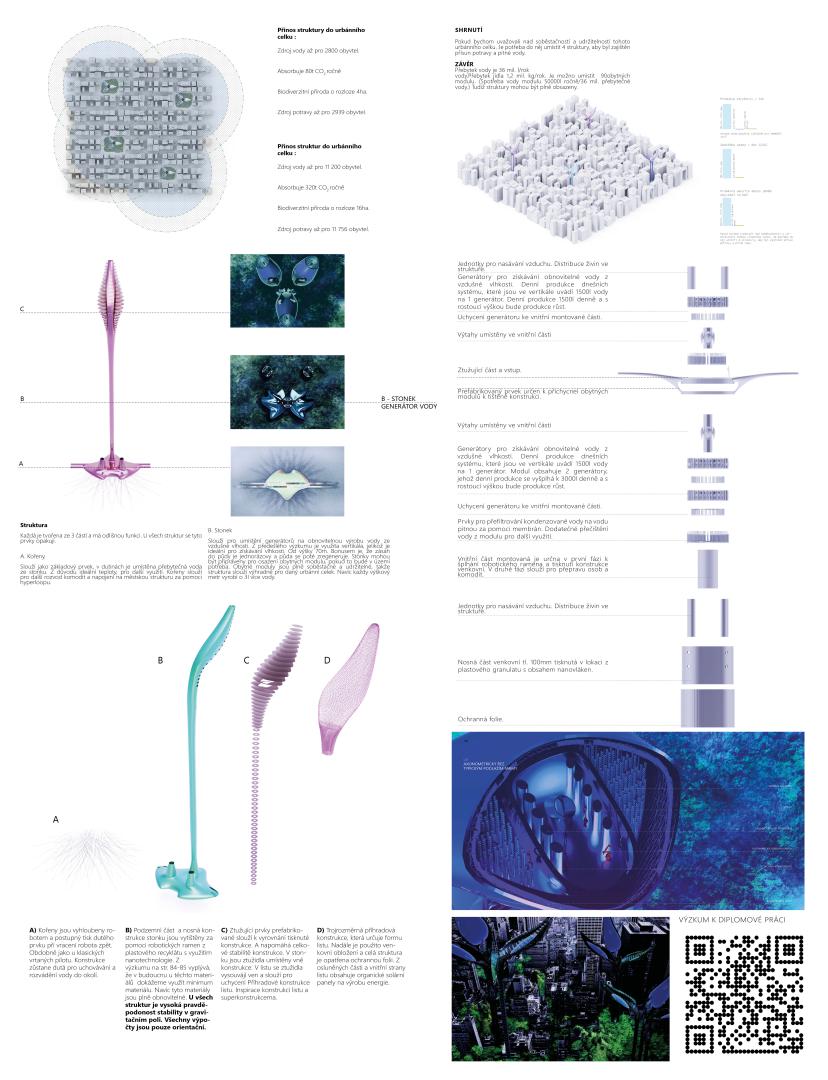 Water production depends on the number of water generation modules. When one module generates 1800-3000l per day. It can be up to 1,000,000 liters of water per year. Which is still used for the urban unit and supplies water to the capsules. The surplus is returned to nature. It is written for each structure how many liters of water it generates for consumption per year.