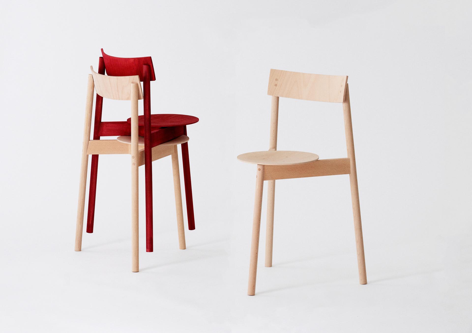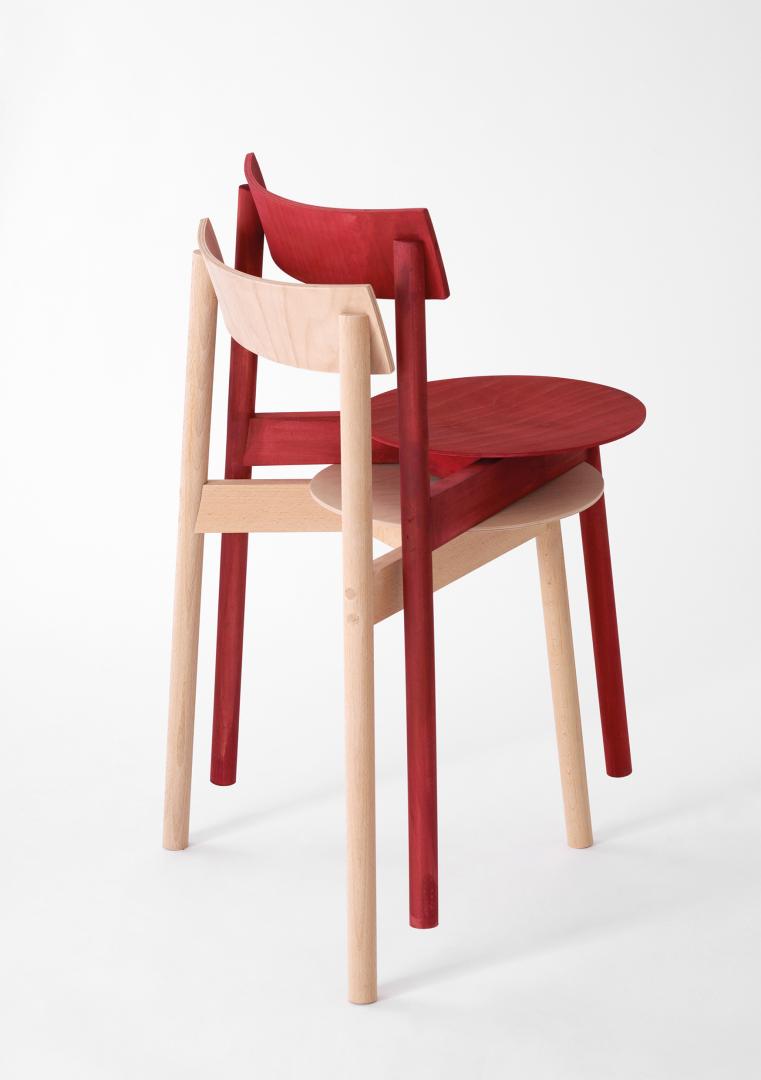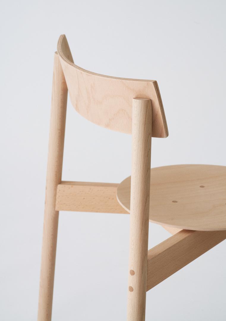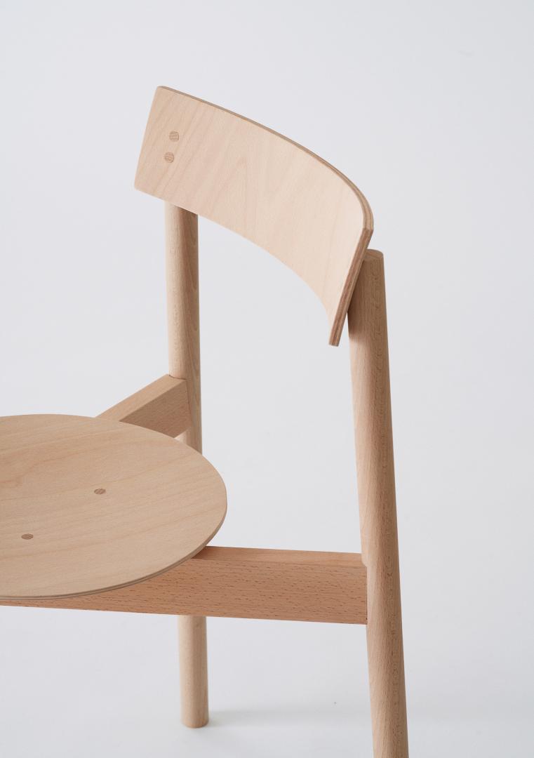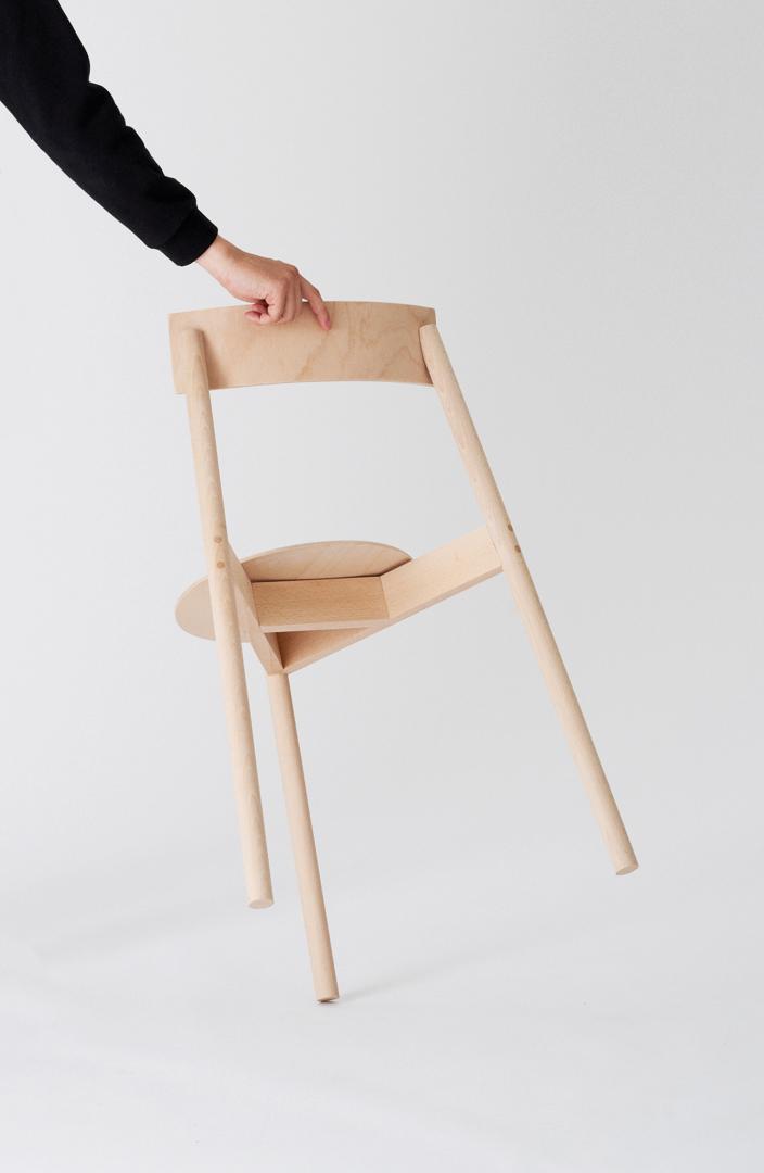 This chair is the product of a contemporary, sustainable approach to design. A meticulous designing process, combined with resource-friendly construction, led to this three-legged, lightweight, stackable chair made exclusively of wood. It seems familiar at first sight, then surprises us with its many thoughtful details, its elegance, and the fact that it is extremely comfortable.