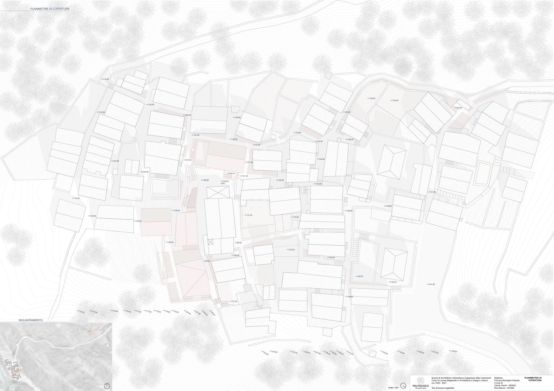 The project is conceived in two areas of the Bognanco valley: a municipality that falls within the definition of Inner Areas. By means of SNAI strategy, Bognanco has been classified as an Italian city in a situation of fragility and marginality because of its distance from essential services. In particular, the valley is in a situation of decline and depopulation following a period of economic development linked to a brief flourishing life of the thermal baths. This valley was however a place of commercial activities linked to agriculture and pastoralism. Given these assumptions, the idea is to restore Bognanco’s potential by designing a place where commercial activities can develop in an innovative way where is given adequate importance to the relationship between man, society, and nature. Two main areas have been identified for the development of the project and both belong to one of the ring paths that characterize the place. The first area is Collorio where there are two abandoned buildings with a strong historical value because owned by Gian Giacomo Galletti, who has gone down in history for supporting culture through many promotional works, among which the construction of schools. The second area is Pizzanco where there are only six dwellers. Its many buildings fallen in disuse have been considered good opportunities for intervention.