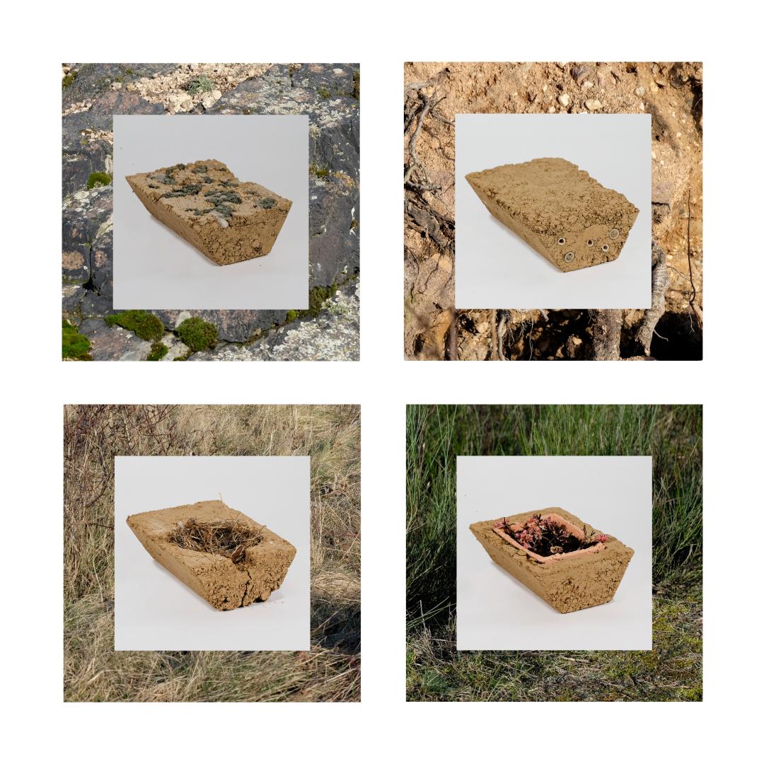 By combining these two aspects, I conceived living structures by integrating different forms into the building bricks, thus creating spaces where biodiversity can thrive. Another key objective on the long run however, is to shine a light on rammed earth, and by giving it visibility showing that sustainable alternatives to harmful construction methods are already at our hands. Thus, next to having a direct impact on biodiversity, the project bears the potential to bring a real change in mentality when it comes to choosing construction materials, whether on a large or small scale. Focusing on adaptability in usage, the project also challenges the paradigm of believing that we must build structures and products for eternity in order for them to be sustainable.