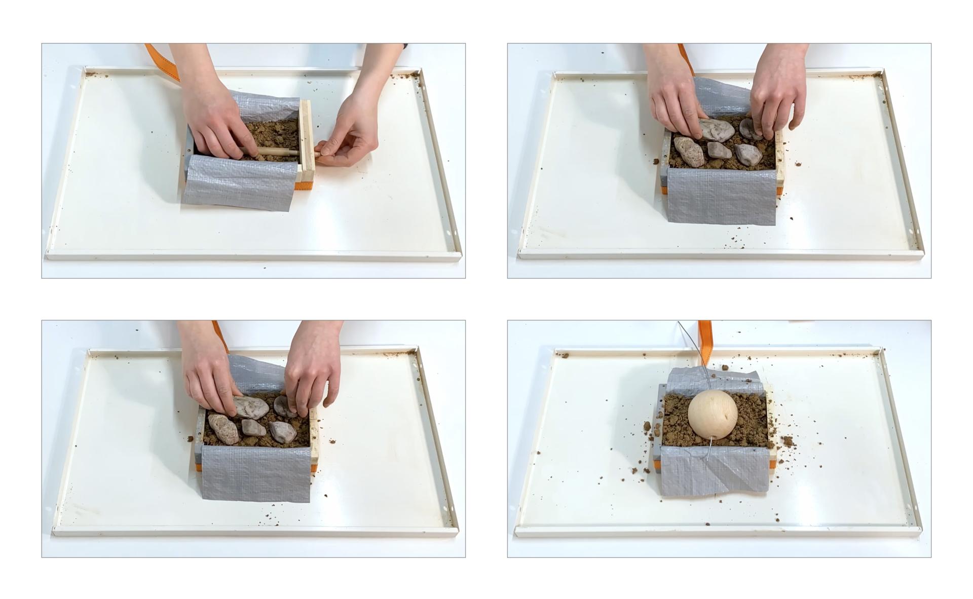 With a reusable mould and simple tools, the earth can be rammed by anyone who is able to carry out the movement of compaction, the physical effort being comparable to chopping wood with a light axe. When working in a team, more or less physically demanding parts of the manual labour can be distributed considering each group member’s individual situation. The technique is a simple, hands-on process and can be learned within half an hour. As the structures are modular, they can be built and positioned in rural areas, but may also be constructed and placed in less spacious areas, such as a balcony or a small urban green space. In another scenario, structures can be placed in public spaces, creating small islands of biodiversity in densely populated cities.