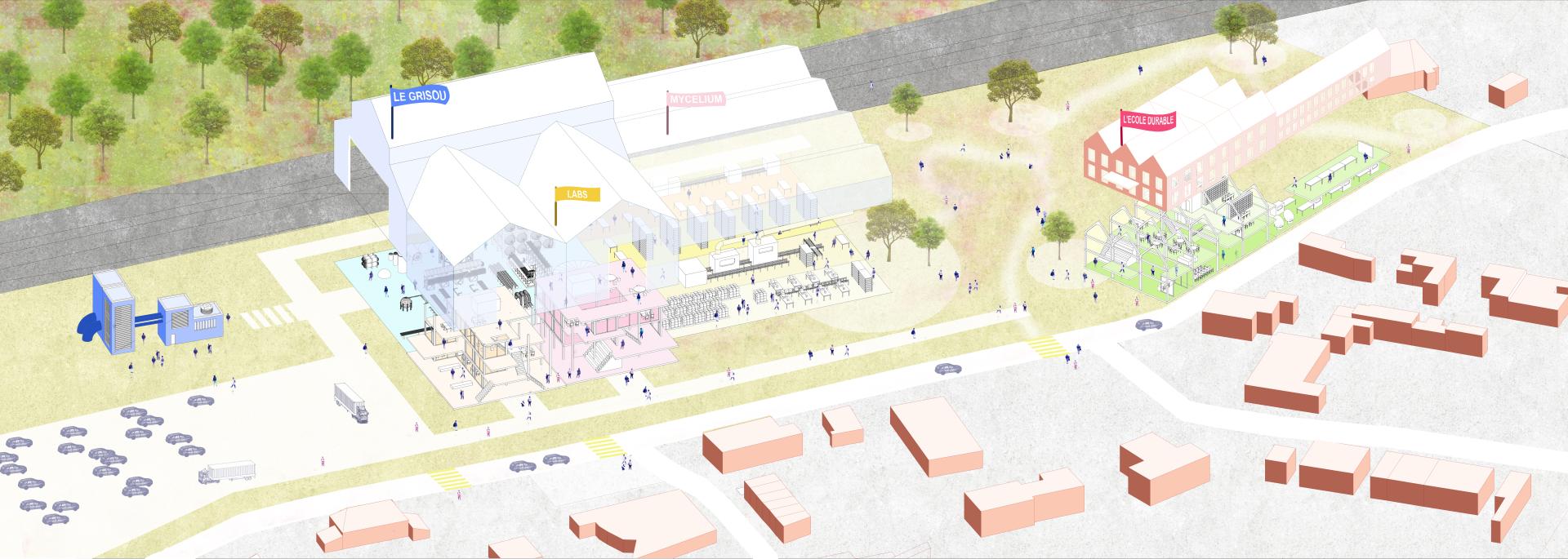 The greater Douais, as with all post-industrial areas, is a forgotten urban fabric awaiting a fresh start. If the term “degrowth” often describes the image of an area in decline, it is also a substantial keyword to sustainability! Therefore, Breeding Ground is inspired by a positive and sustainable degrowth, embed in a territory capable of change, and allowing smart densification and profound economic changes. Above all, applying circular tools can sprout a new commons called resilience.