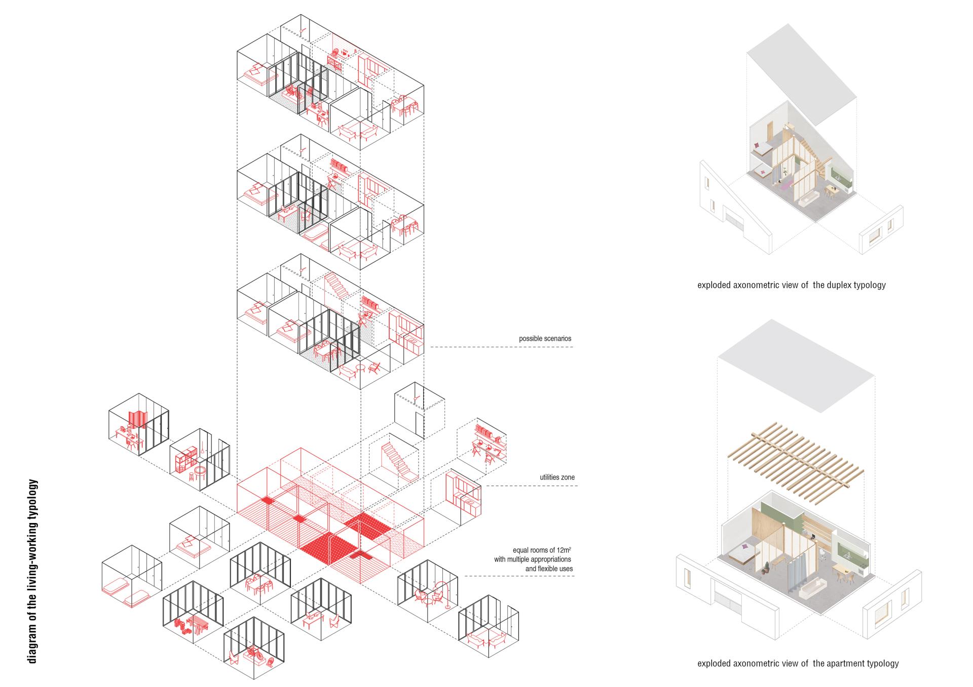 The residents are invited to take part in the design process, learn about the ecological aspects and newly introduced materiality, as well as to become aware of this new culture of living in coexistence with nature. These actions attempt to establish a micro-neighborhood feeling and enrich the proposal with sustainable strategies that respond also to economic, social and cultural empowerment in addition to enhancing building performance and environmental conditions. Our concept attempts to introduce an ecosystem that helps the community to find freedom through sharing and set up a dynamic, inclusive and ecological frame to function.