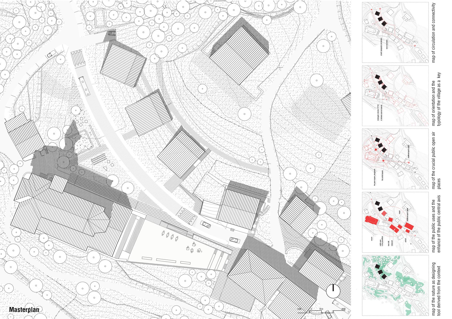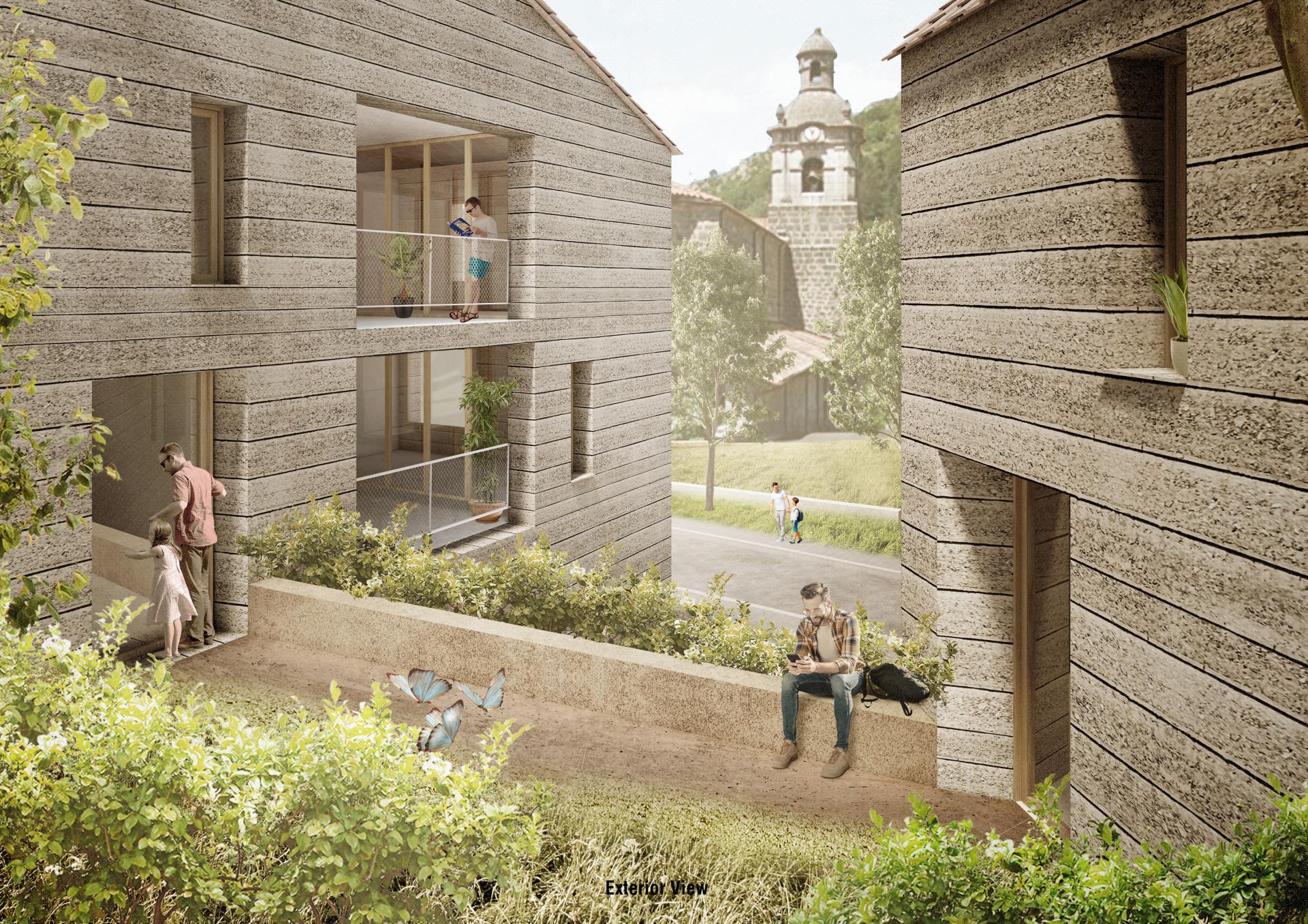 Reinventing living in the periphery means creating a generator of housing patterns that carries the potential to answer the question of how we can live together, while proposing a dynamic relationship between the inhabitant and the natural environment, which is not based on exploitation. Respecting the scale of the surroundings and the plot’s inclination, an interchange of private and common in-between spaces is set on different levels to allow strong interactions and introduce a socio-cultural dimension to the proposed ecosystem. To remedy the phenomenon of young people abandoning their locality in search of work opportunities, our proposal aspires to set up the conditions for productive activities to flourish, in order for Beizama to reinvent its character and, subsequently, enhance demographic diversity.