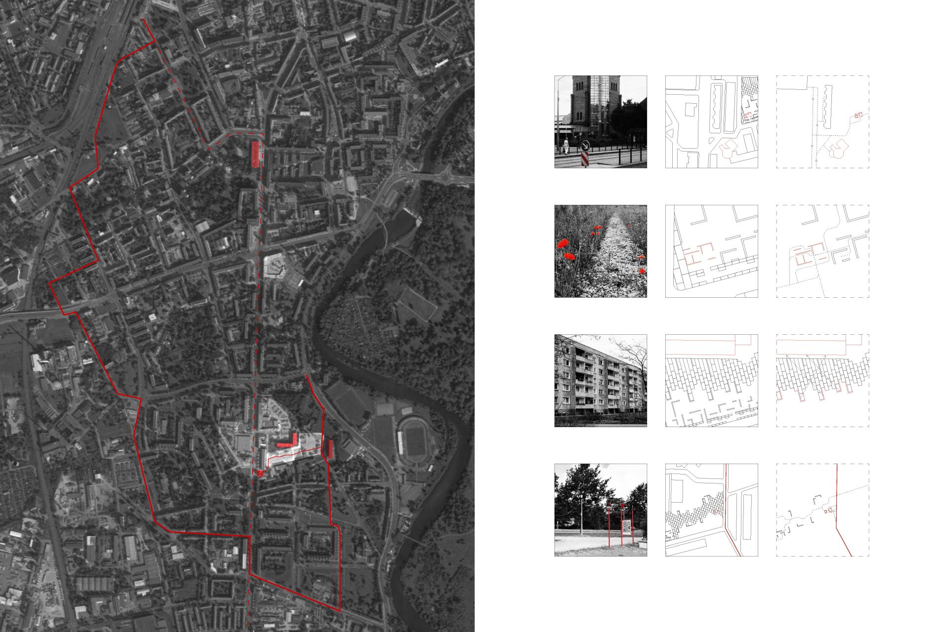 Plattenbau, or prefabricated concrete panel buildings, were constructed throughout East Germany to house individuals and families after World War II. Many of these concrete structures have since been demolished, yet some still exist, a glimpse of the past in an evolving present. Dessau, the second home of the Bauhaus, is the site of a proposed urban intervention. Like many East German cities, Dessau was heavily bombed in World War II, fragmenting the urban fabric indeliby. The city is a juxtaposition of Bauhaus influence, East German concrete construction, and modern big box buildings. Using concrete panels from demolished buildings, this landscape and architectural intervention transforms the former site of a plattenbau building into a public park. The intervention gives new meaning to materials of the past with two pavilions and landscaped hedges constructed from whole and crushed plattenbau. Both familiar, yet unfamiliar, the pavilions are palimpsests in the landscape, juxtaposing past and present.
