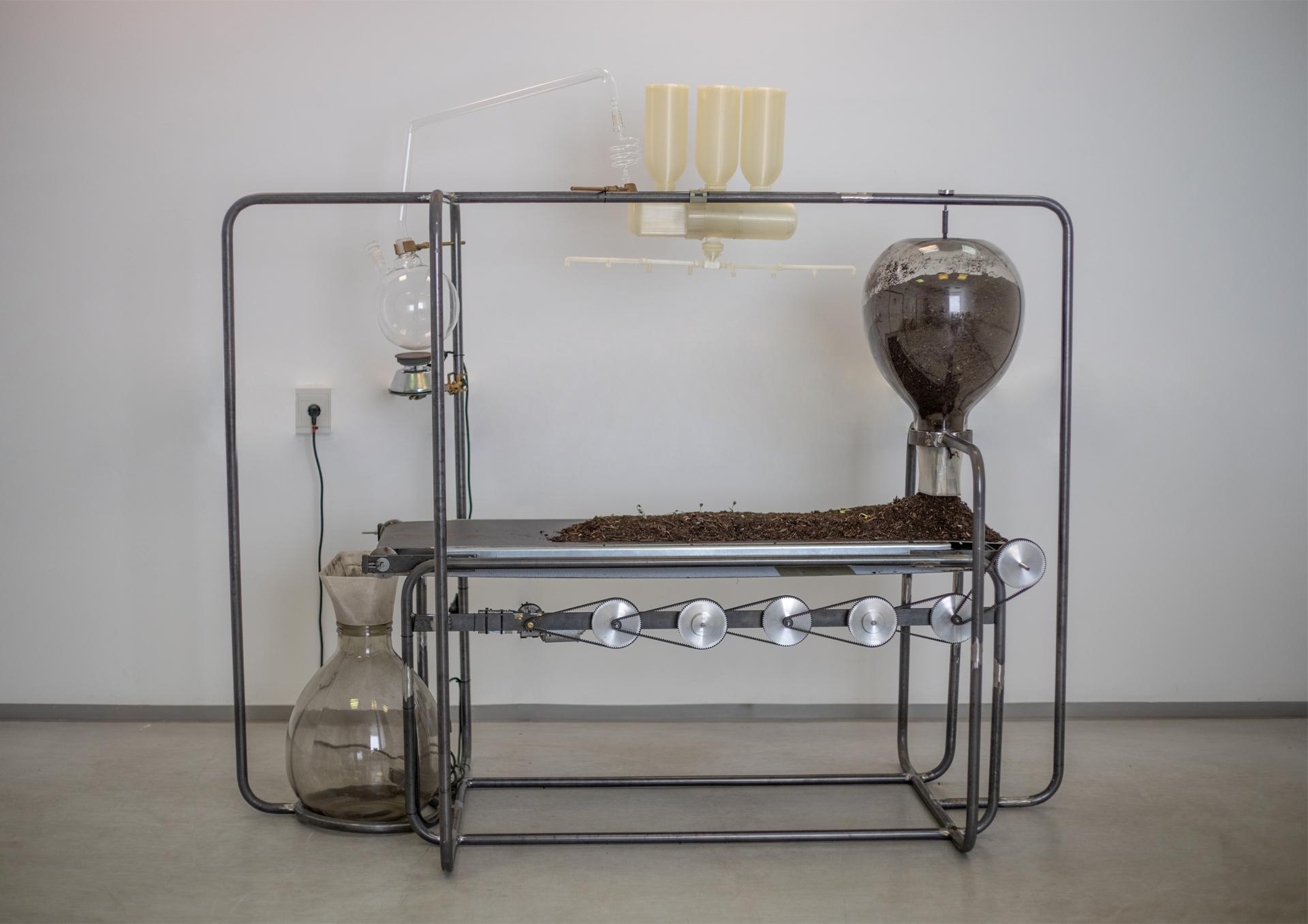Terraport, speculative but fully functional machine, stems from the human desire for interplanetary travel and initializing life on an uninhabited cosmic body. It aims to do so by terraforming martian regolith, with the help of frugal waste management of my female body.The regolith in the TerraPort installation is artificially composed according to the data collected from probes orbiting planet Mars, a planet that is connected to the notorious New_space paradigms.