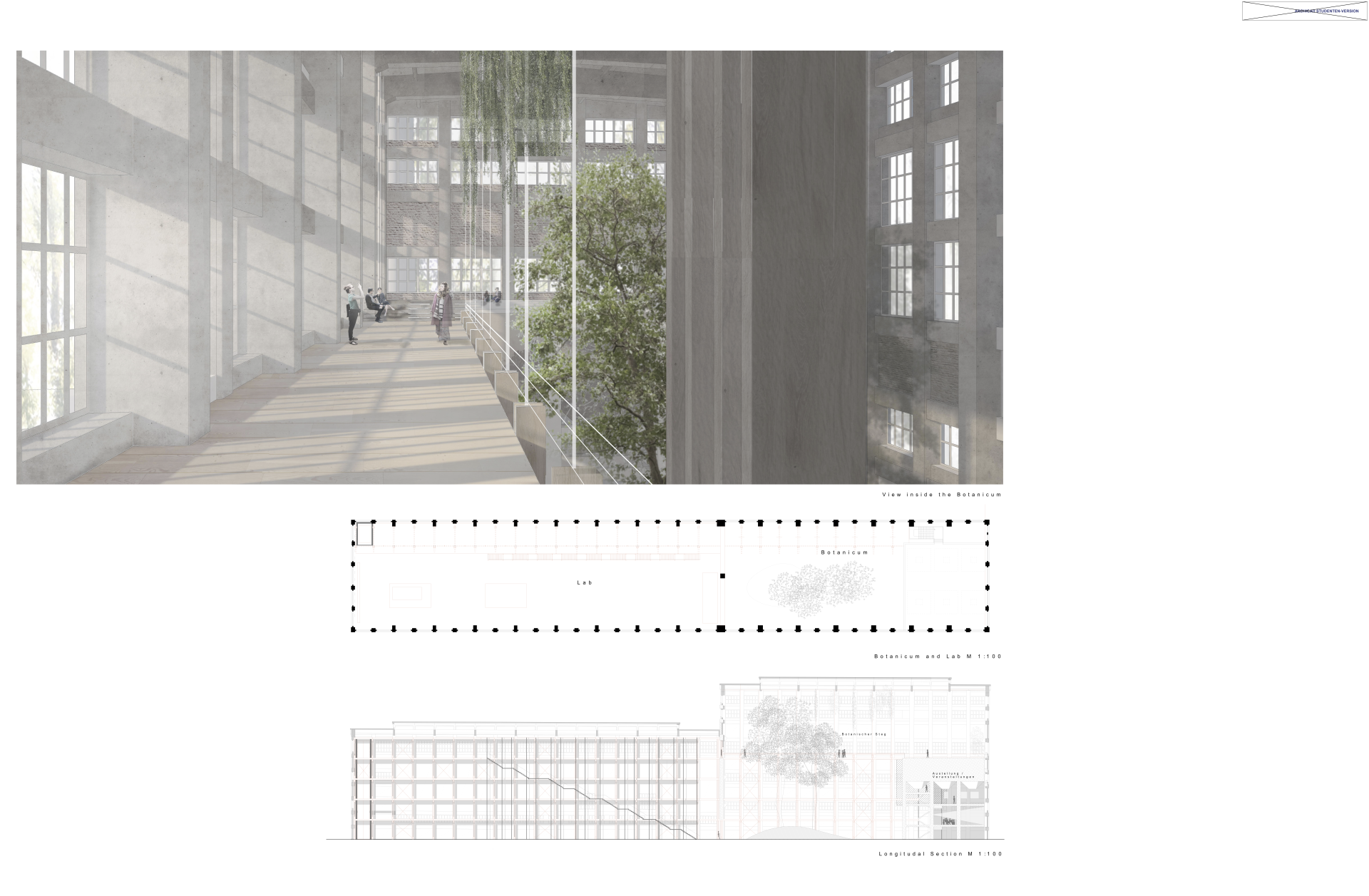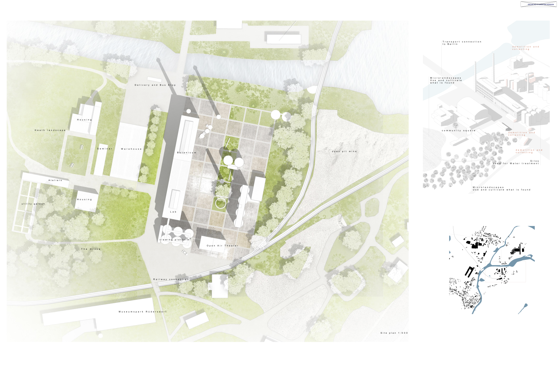 Work in the existing, industrial, large-scale context. The spatial structure of the old industrial site is preserved and transformed within the context. The access roads and already sealed surface are used. Vegetation is integrated as "micro landscapes". The mixing plant is the center of the site. With a native botanic walk inside and a laboratory for circular building, it invites visitors to experience the fabulous building in a new way.