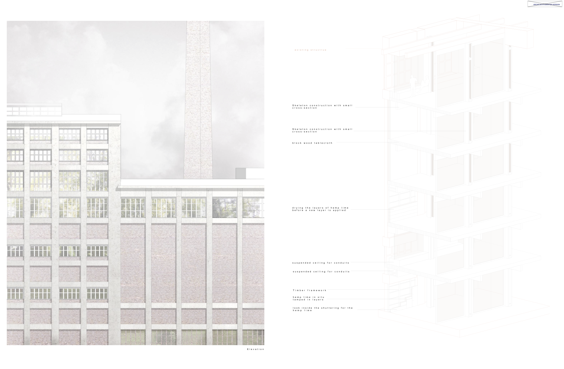 The building as its own resource. Surrounding building material manufacturers and wholesalers will be involved in research work, knowledge transfer and storage capacities will be expanded. Existing infrastructures of the industry will be shared (railroads, roads but also storage areas and waste heat as district heating)