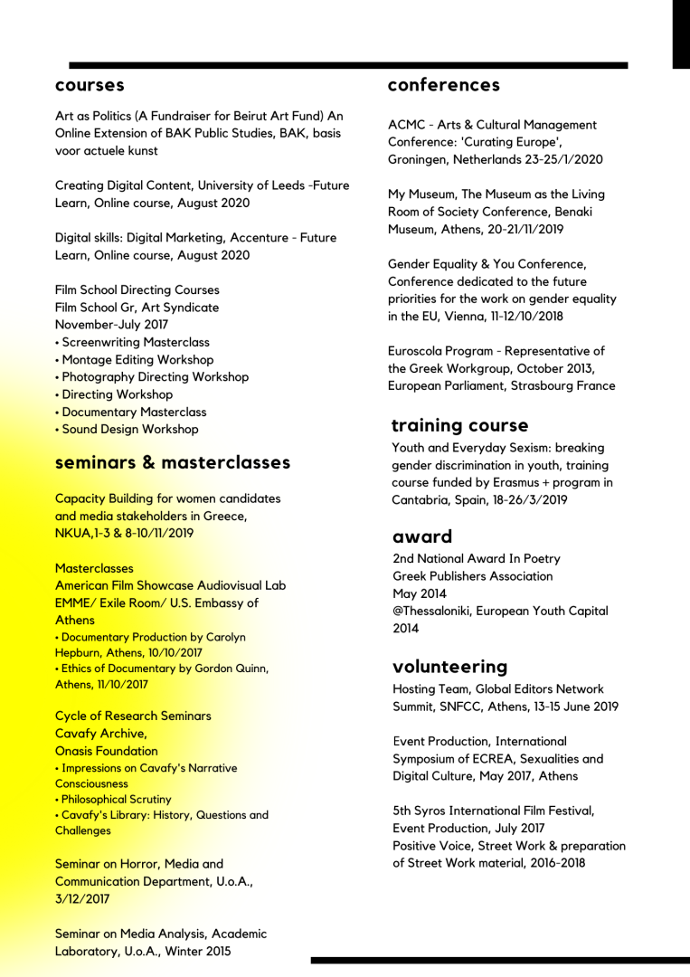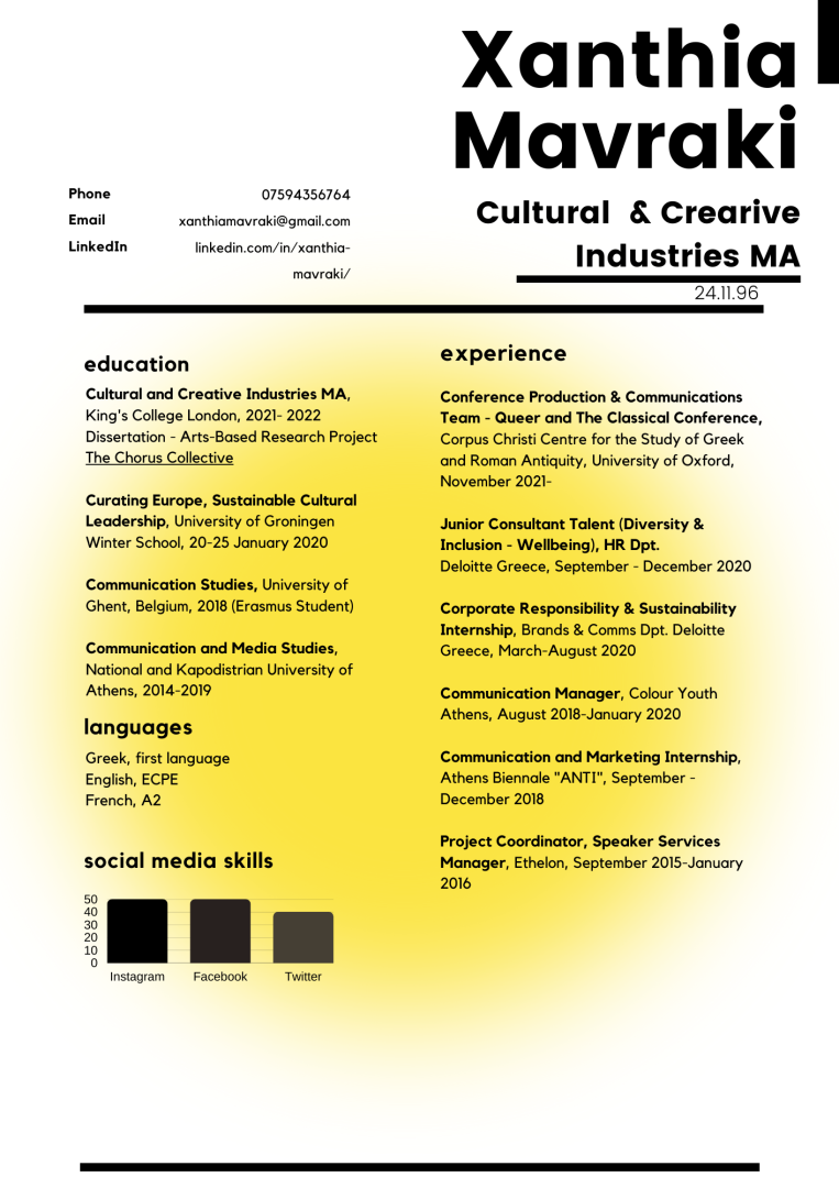 I created imaginary inspired by Greek mythology and the masks worn by actors during Greek plays, to create a solid a cohesive brand identity for the Collective. You can have a look at the visuals on the website and the Instagram account of the project. I have already created a coherent and solid brand identity since I believe that especially for this project aesthetic quality is crucial for its success. My experience in graphic design and content creation will assist me to elevate the brand on a bigger scale.