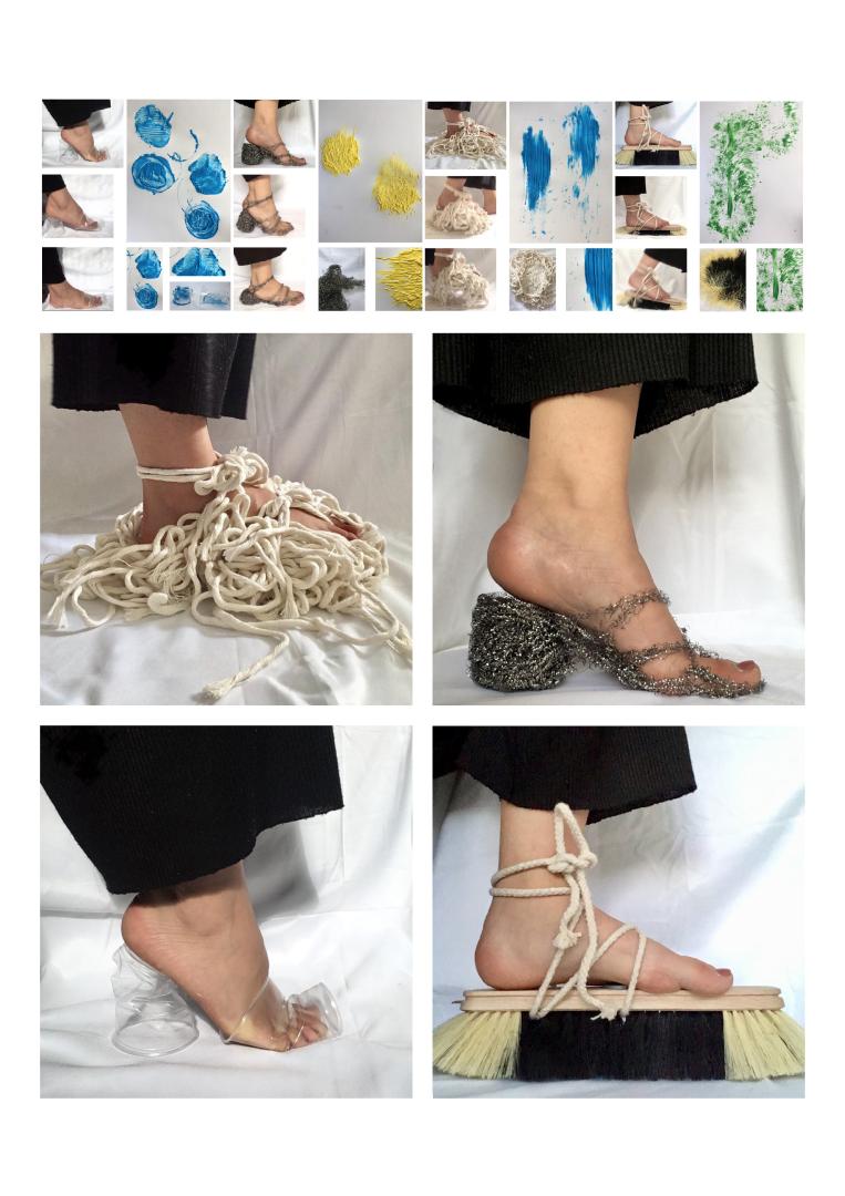The key objectives of Corporeal Architecture in terms of sustainability were to sensitise students to the impact that building has in the carbon footprint and the importance of addressing the built environment as something that can be radically transformed by capitalising what is already there. Applying the Neurosciences concept of neuroplasticity, all design tasks challenged students to shift their perspective and explore the potentials of existing materials, spaces and buildings. Instead of acquiring brand new materials to realise their designs, students were encouraged to work with found objects, waste material from their own consumption or collected. This had the objective to change their perception of waste as something to be rejected, to something which has value and understand how every material can be transformed by proposing new uses and not necessarily by destruction. Students were sensitised to the importance of seeing the built environment as a place which is rich in materials and potential, and how in the future we can design by exploring the properties of each material, building or space until its very last possibility of use, expanding its life cycle. The ultimate goal in terms of sustainability was to break away the old patterns of throw-away culture and explore the creation of an aesthetic that challenges our ideas of value, our perception of what is old and new and joins cultural heritage with innovation.These objectives were met by the implementation of such ideas in design projects which explored through performance and installation how such a de-contextualisation of object, material and human body can introduce new patterns of use and establish positive affective bonds with problematic materials and locations, changing how we perceive and interact with them. The design tasks also encouraged a positive connection to sustainability not as a set of restrictive duties but as a goal that inspires creative action and fun.
