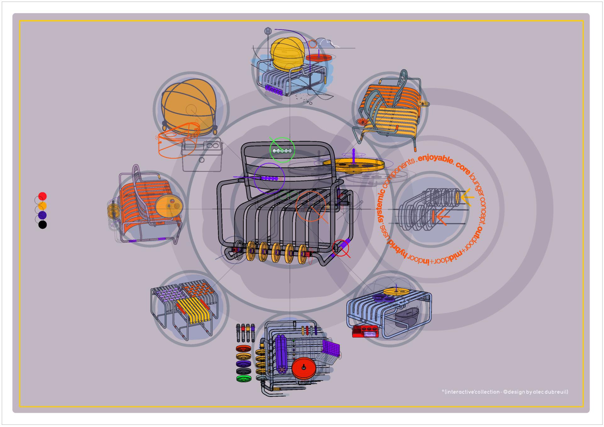Emergence is not an emergency but a deliberate arbitrage to the benefit of novelty, opposite in its reaction to the conservation of an object or its relegation, right up to the very meaning of possession. “Our possessions possess us?” Not really anymore, for we can preserve the best and replace or recycle the worst. I propose to revisit the fundamentals with which the vitra brand is directly associated, more as a tribute than as a transgression of the authentic. Your ‘intelligent’ catalogue is a reading of the work and production of furniture creators and of their creativity that equals their ingeniousness, crystalised at the epicentre of their modernity. Beyond the obligation of creating a listing, an inventory —this study explores the function (its potentate) of the desire of an object (its value), from a perspective drawing to the 3D model through to a prototype dedicated to production and manufacturing, characterised by the systemic logic that links each individual object to the whole, a multiple, potential collection. This was conceived to satisfy a variable geometry of needs and situations, above all a particular interest for aesthetic detail and all or part of its design, seen in the quality of its fabrication. As Charlotte Perriand so perfectly declared — "the most important thing isn't the object but the person".