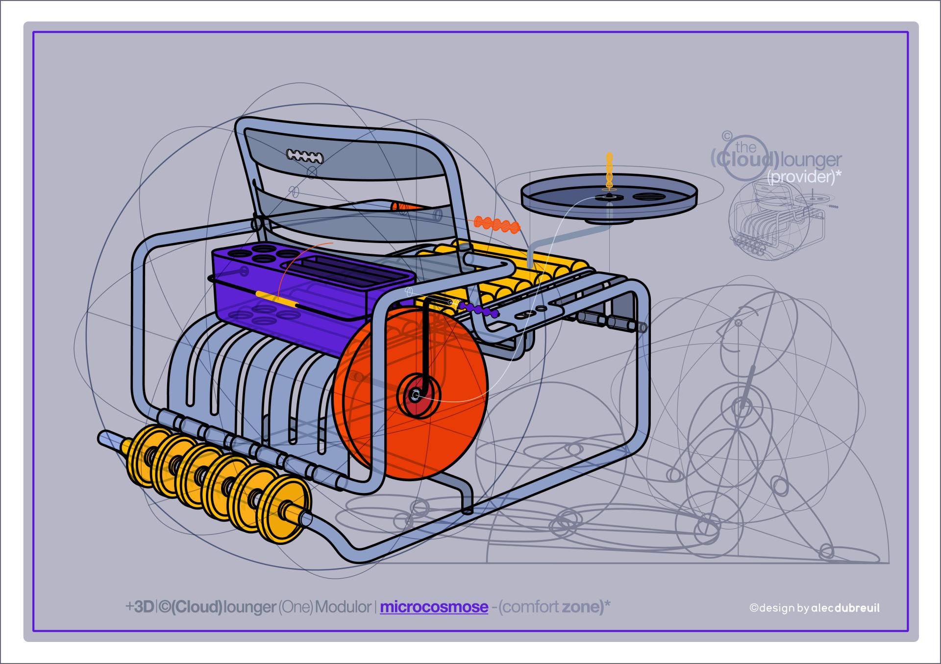 XXIst furniture manufacturing knowledge (>) applied to the comfort zone : the most wanted accessory, a (central display) system set up to provide whatever you wish : how to upmarket + twist technology (into) tradition to create unlimited interactive chair(s).