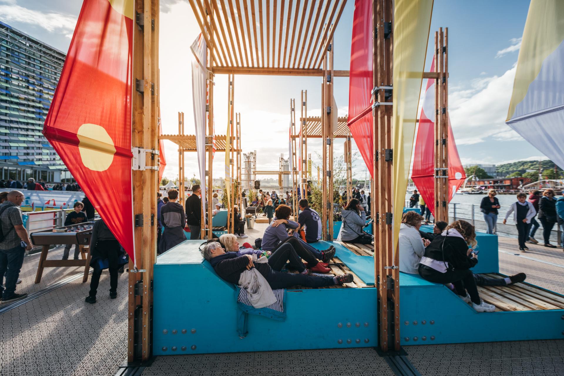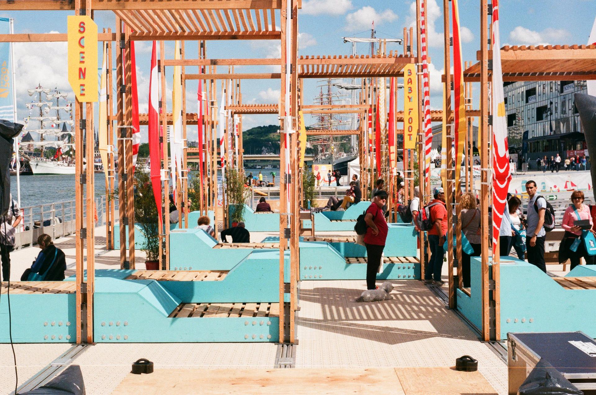 The Armada of Rouen, France, is an event that brings together the world's largest sailboats and ships, every five years. Faced with the majestic immobility of some of the most amazing boats in the world, passersby can take the time to stop on the installation designed and installed by the Collectif Parenthèse.