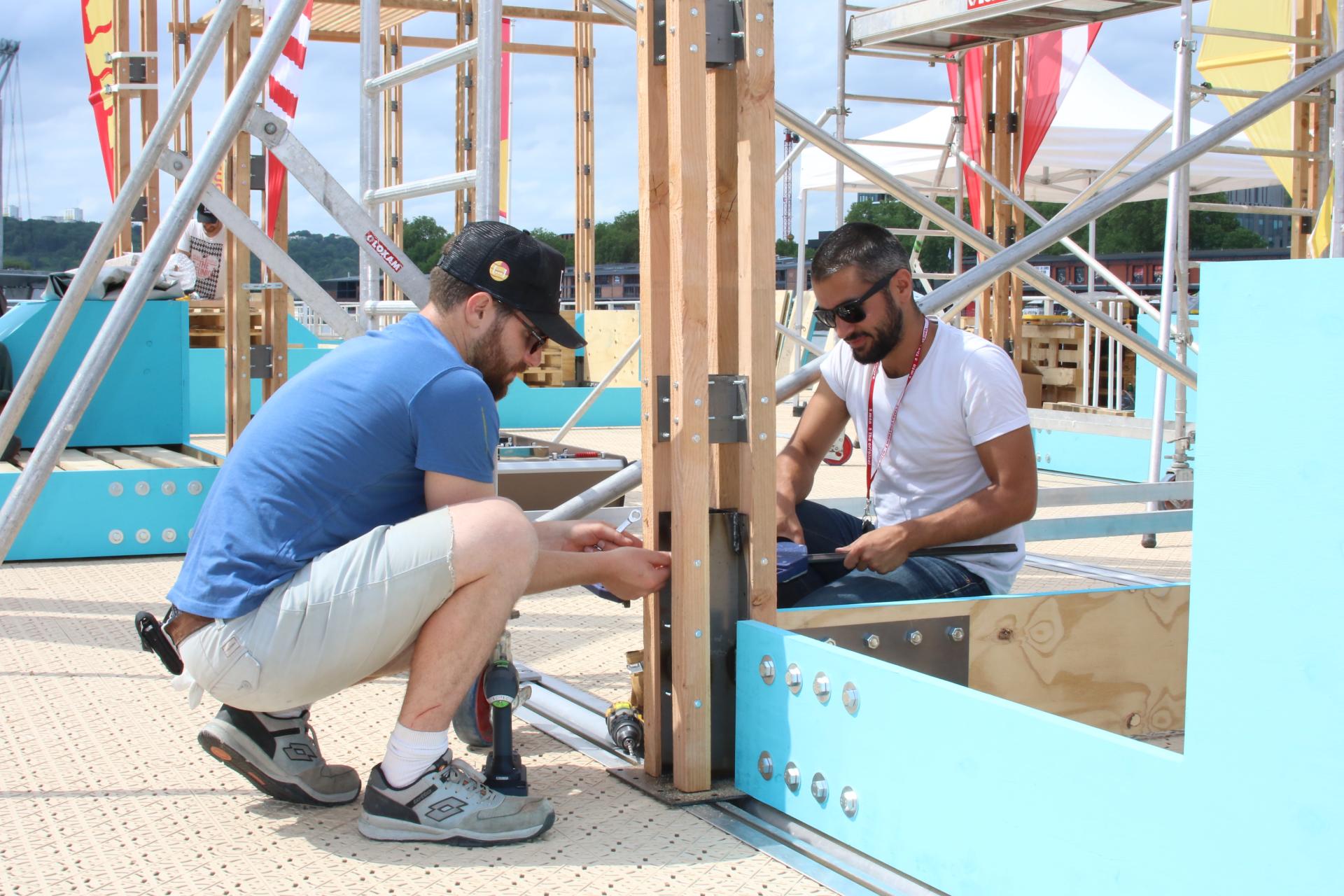 This is the approach we took for the Armada event without increasing the budget compared to an event of this magnitude. Local resources in sustainable forests, structural and stability sizing calculated by an engineering office for adaptability in all places and for all soils, rental of pallets nearby to limit transport and delivery, a orderly storage for quick and efficient reuse of the structure.