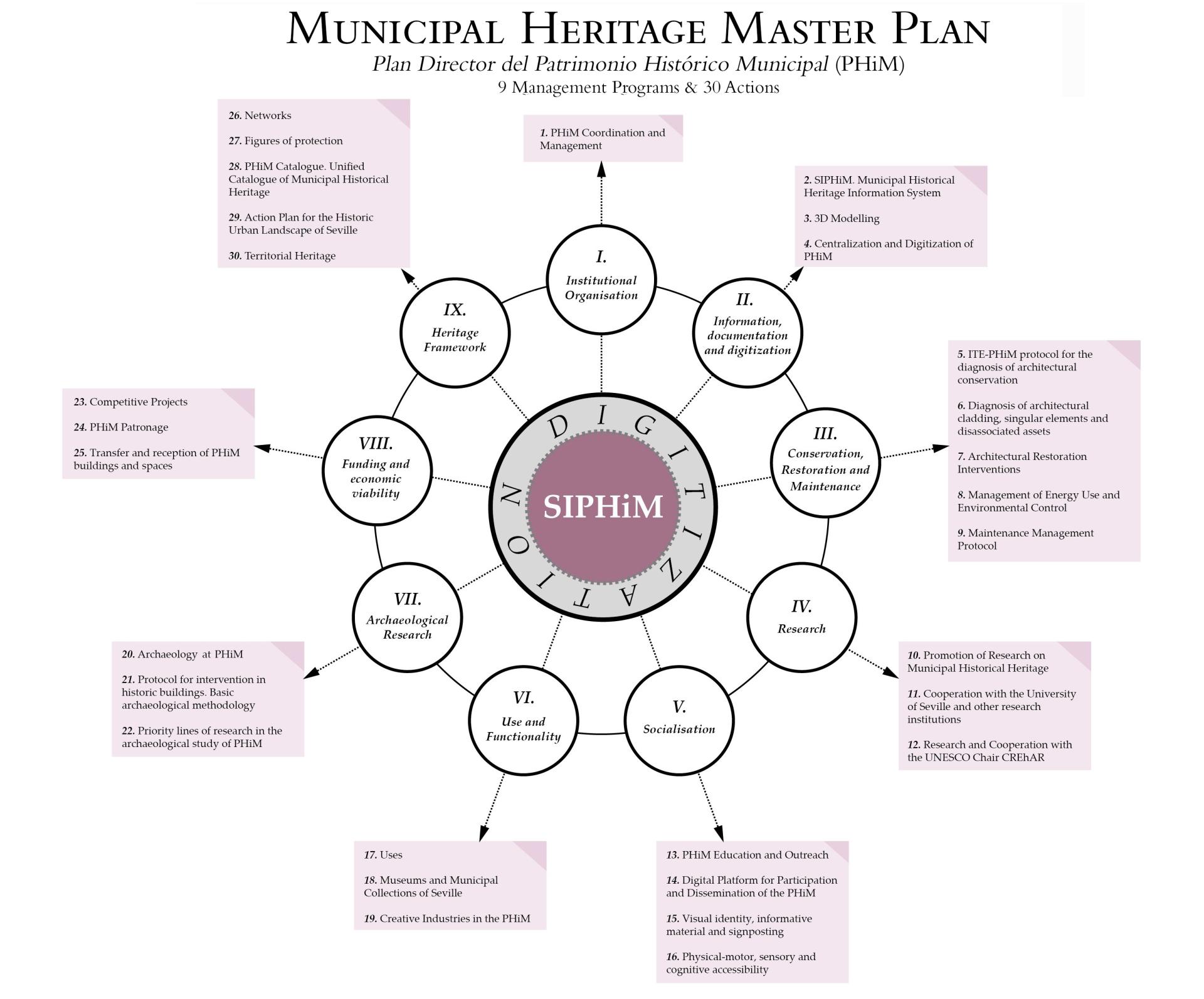 Seville Municipal Heritage Master Plan is a pioneering model comprehensive management tool designed for the first time for the preservation, transformation and reuse of a city's municipal heritage buildings. The model strategy has been developed initially for the 115 municipal architectural heritage assets of the city of Seville.