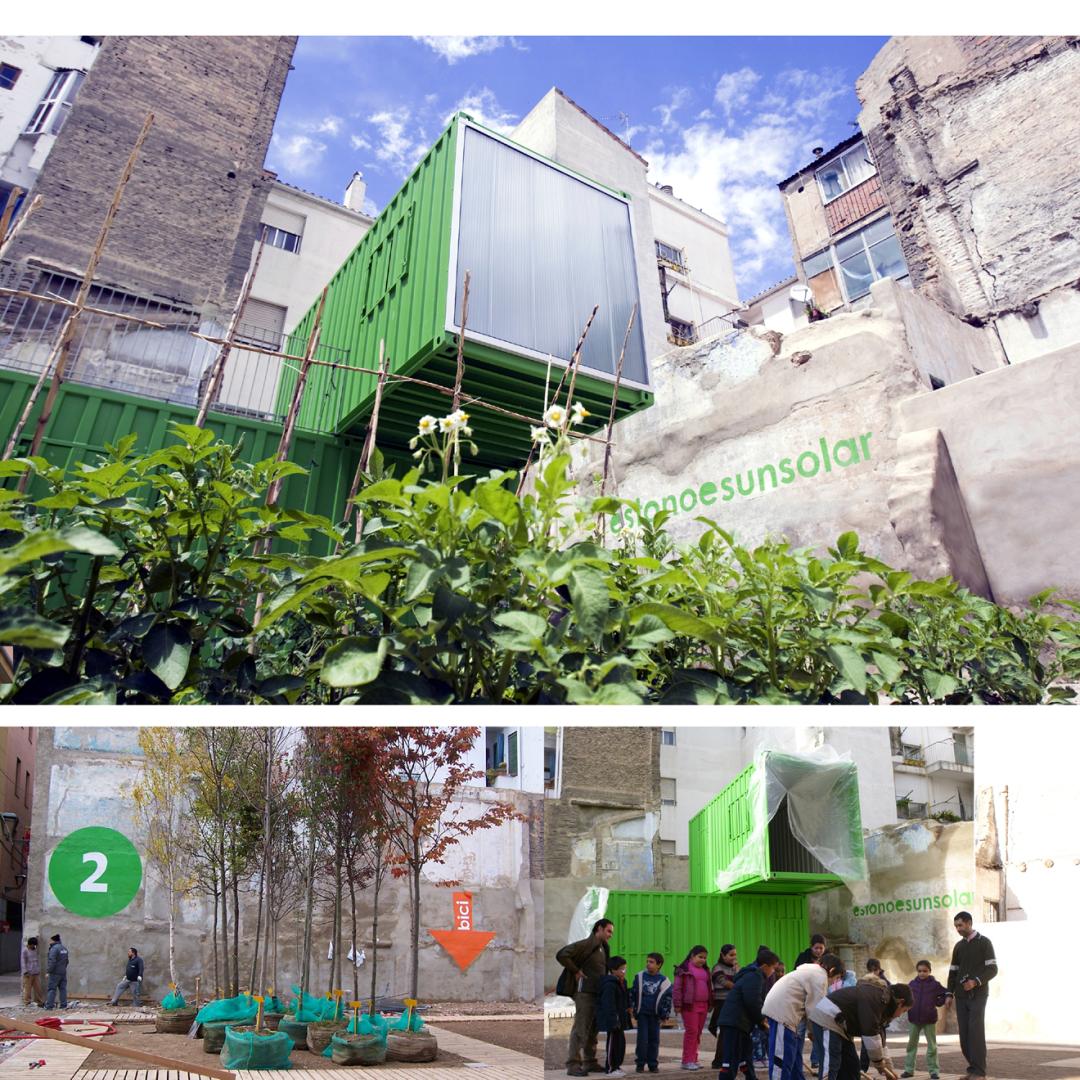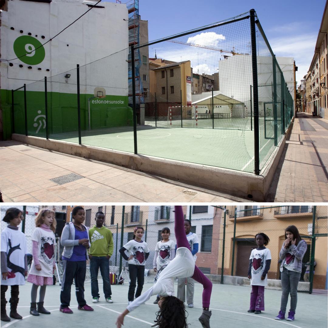 The "estonoesunsolar" programme arose as an employment project to clean up abandoned, run-down vacant plots in Zaragoza’s historical centre, aimed at the long-term unemployed. With this as a starting point, the idea was suggested of creating a series of proposals that allowed for provisional occupation of the plots, providing a number of temporary public uses, in order to make full use of them.These dynamic, changing “new spaces” provide a fresh reading for the city and public spaces. Each plot contains an idea, and constitutes a privileged place.There have been built children’s play areas, a giant ludo board, a tricycle racetrack, urban vegetable gardens, a green garden-carpet, a forest, a basketball court, a volleyball court, a place to play petanque, a ping-pong area and a football pitch.The employment plan, which arose in order to clean up plots, has been transformed into the creative “estonoesunsolar” programme for recycling empty urban spaces through low cost actions and citizen participation.Within this framework and with a clear educational intent, a series of workshops was organised, in collaboration with the city’s state schools and children’s associations, with the aim of bringing architecture closer to children from five to twelve years old, making them participate in the planning and construction of the city. Each group came up with a proposal to transform a site into a public space. The children produced texts, drawings and models, and proposed solutions to adapt an empty plot. Finally, a jury chose the winning proposal, which the “estonoesunsolar” team built as closely as possible.As well as the children, the general public also put forward proposals, thus promoting involvement and civic participation in the project.