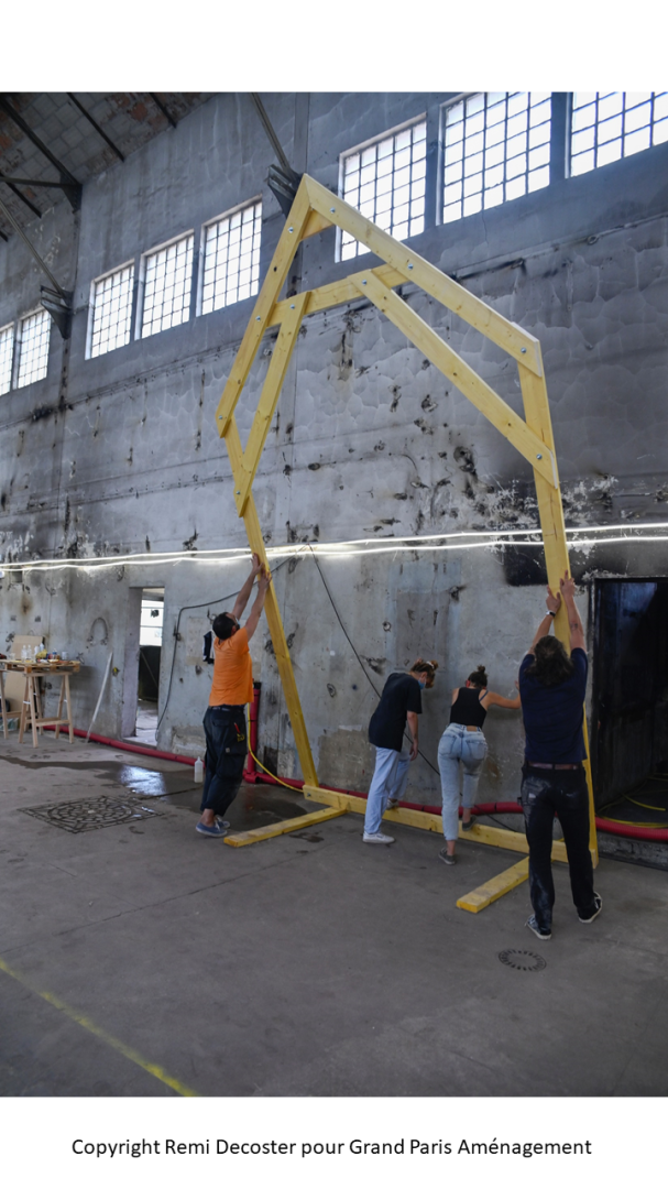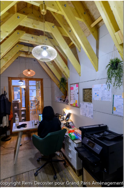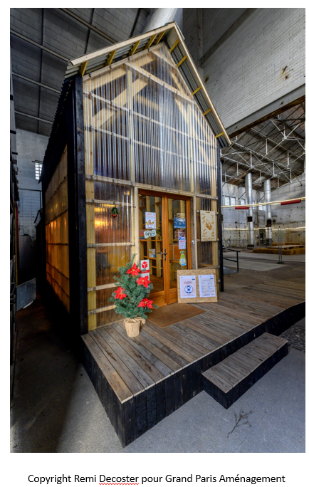 This structure, named La Cabane, is located in the heart of Maison Blanche site: a strategic place to meet people and create social links between the inhabitants of this new district. La Cabane is a “temporary bubble” made with recycled materials.