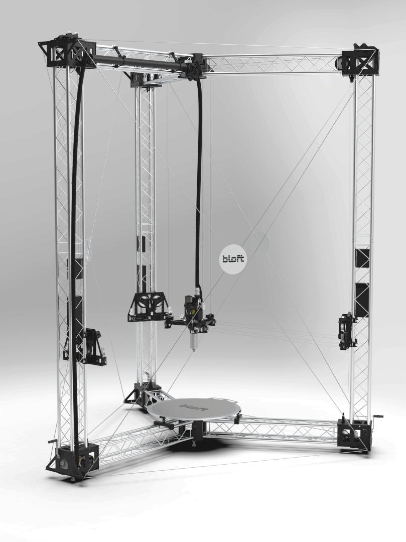 Our unique kinematics concept enables us to extend future printer models with only minor cost increase. The inexpensive lines supporting and moving the print-head are one of the few things that restrict the printer dimensions. The concept is suitable for small desktop sized printers, but it could also be a printer of a massive scale. For instance on construction or shipyards.