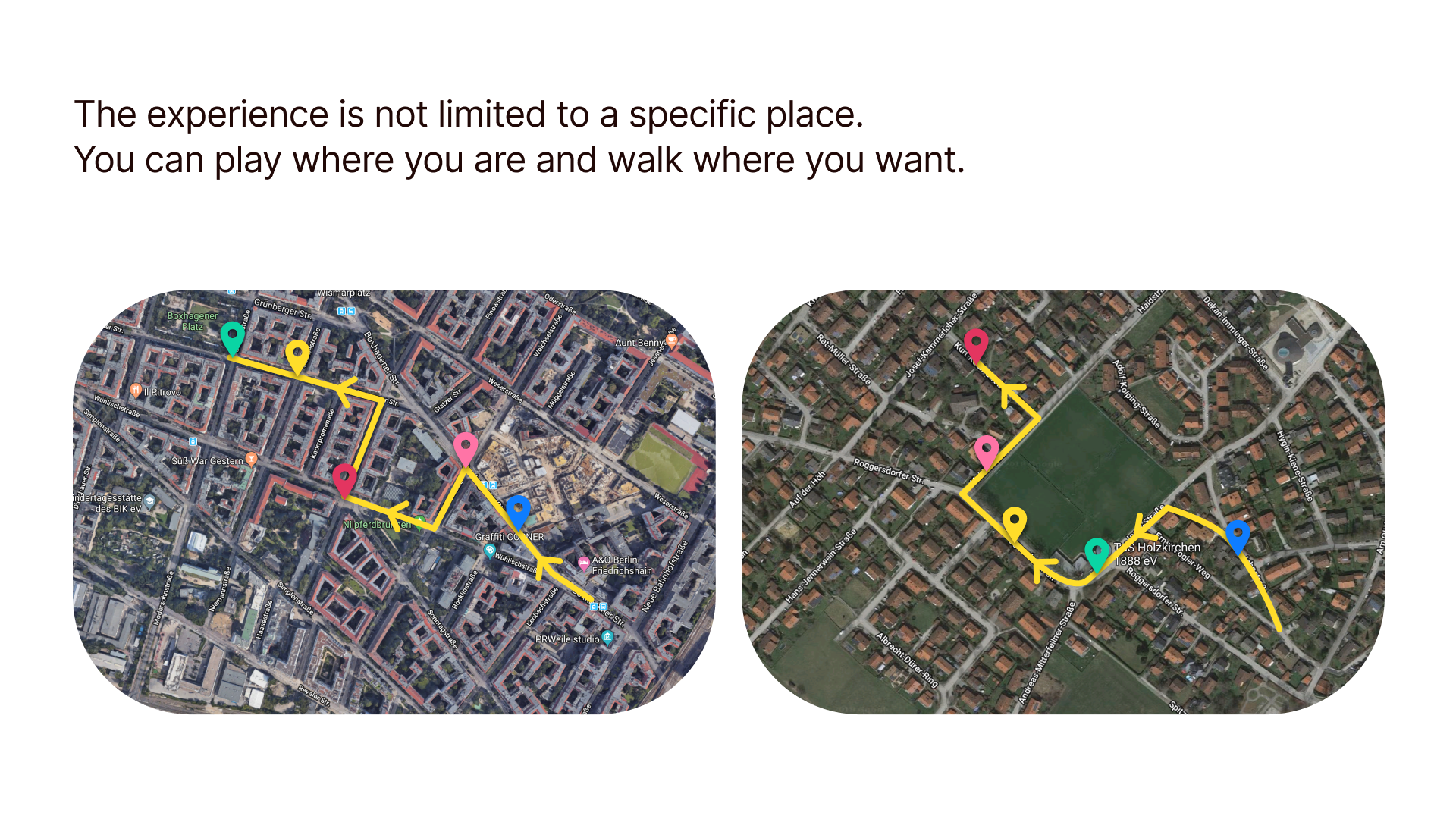 The augmented audioplay is composed live and interactively, according to the listeners' individual walking route and direct surrounding. This is achieved by analyzing GPS position data and comparing it with a database of location and object data. In combination with other public data sets, such as weather, time and location-based statistics on crime rates, rents and population density, targeted narrative content is generated live and adapted to the listeners' walking route. This makes the listeners interact directly with their surroundings, creating a truly interactive, relevant and at last educational audio experience.