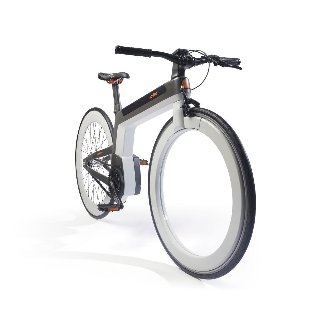 OOHBIKE is an innovative electric bicycle that features a hubless front wheel without spokes that allows you to use the interior space of the wheel for elements such as: storage and package transport space, advertising uses, etc.