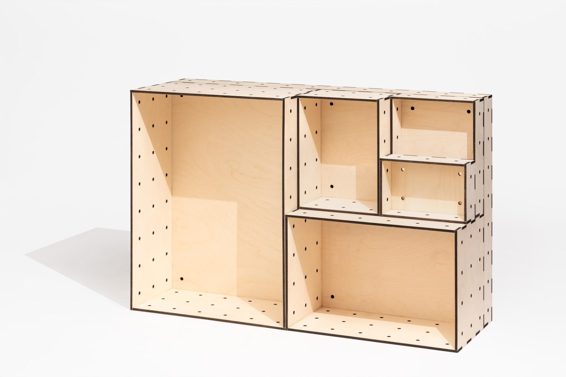 The many possible combinations of the furniture system encourage users to try out very different visual and functional possibilities. Both straightforward and "wild" objects can be created. The material appearance and the look of the wooden panels are pleasant to the touch. The scorched cut edges and the openly shown construction details make the production process comprehensible.