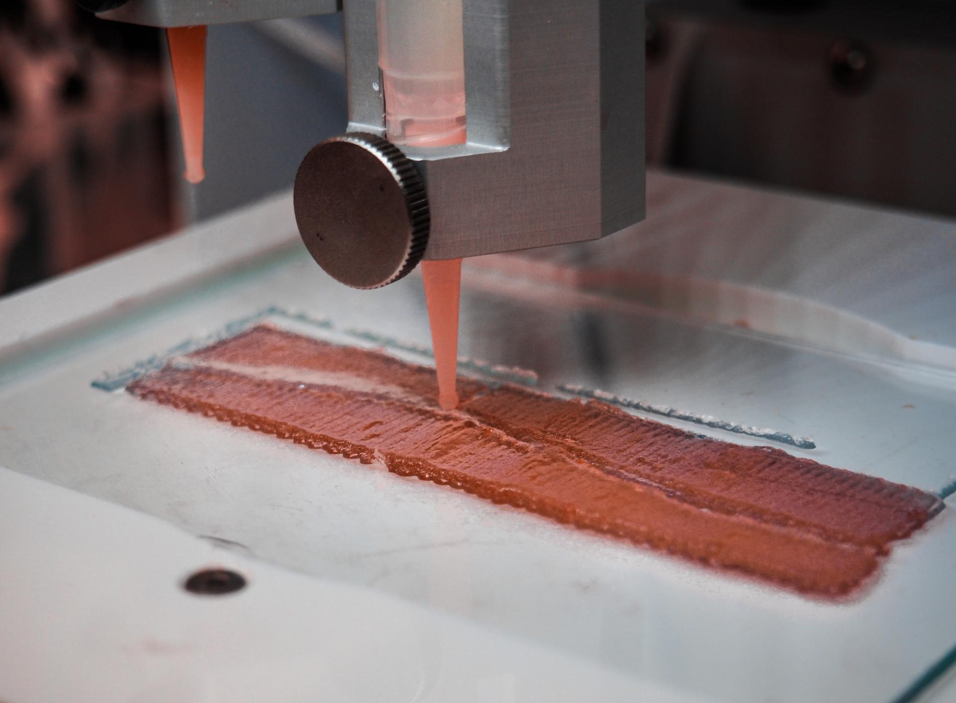 To do so we used a variety of hydrogels, which were combined via multilateral print to create plant-based bacon that changes its shape by curling during cooking similarly to pork bacon. The flavour was achieved by mixing common spices and presence aromas created by the Maillard reaction. Our product provides a great alternative to animal-based bacon, and it does not compromise on flavour and experience.