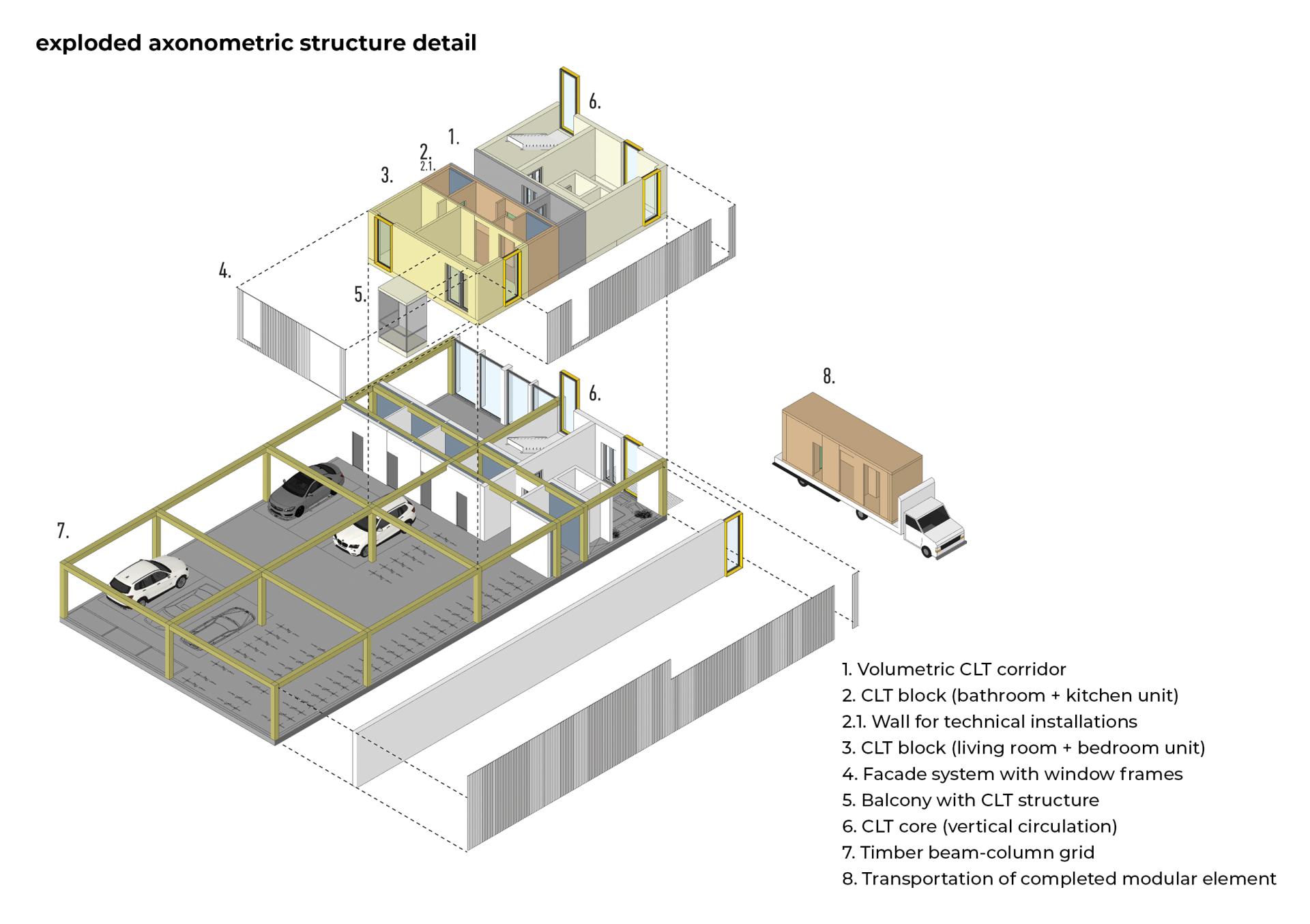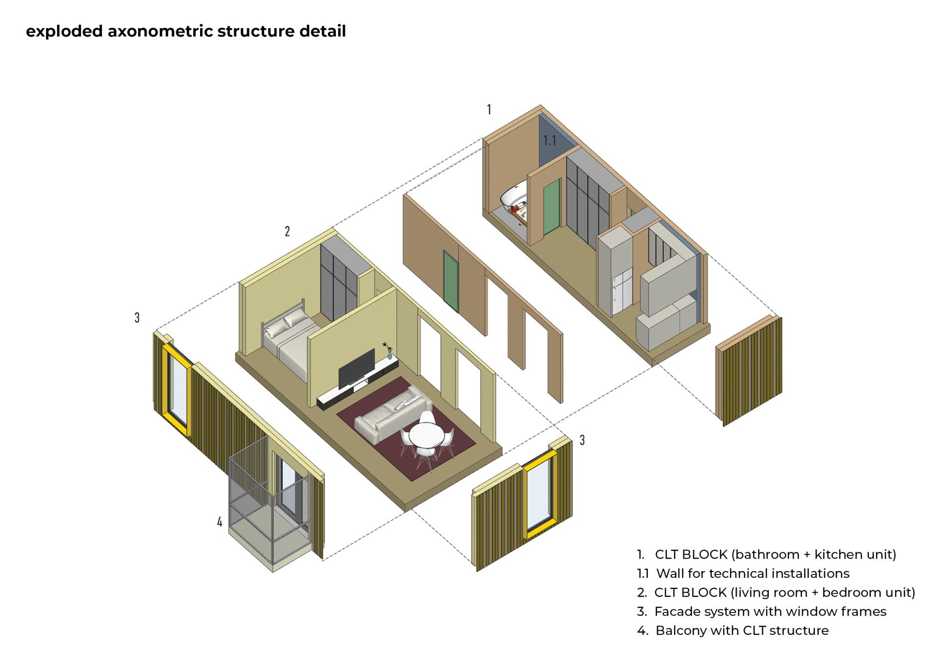 The use of prefabricated timber volumetric modules will significantly reduce the price for the construction as it is much easier and faster to build entire prefabricated elements in the factory during all seasons.