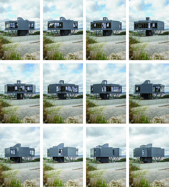 The design of the structure responds differently to the immobile part or the rotating part. The main differentiated objectives for the immovable part were to provide stability through the weight achieved with reinforced concrete, while in the moving part the main differentiated objective was the reduction of weight to facilitate the economy of energy. Taking advantage of sunlight, the rotation system promotes energy savings at the level of thermal comfort of around 90%. The transversal ventilation system answers the customer's desire not to have air conditioning. The simple construction system, of industrial character, uses: steel profiles; secondary structure in M sheets of C-shaped sheet; lightweight coatings, consisting of polyurethane sandwich panels and wooden deck; circular steel tube posts (CHS); solid wood flooring; and exterior walls are self-supporting, with sandwich panels ribbed polyurethane with inner coating in plasterboard and exterior with panels in steel sheet. Not yet a self-sufficient project, it is still an experience sensitive to environmental issues, at affordable costs, and with basic maintenance.