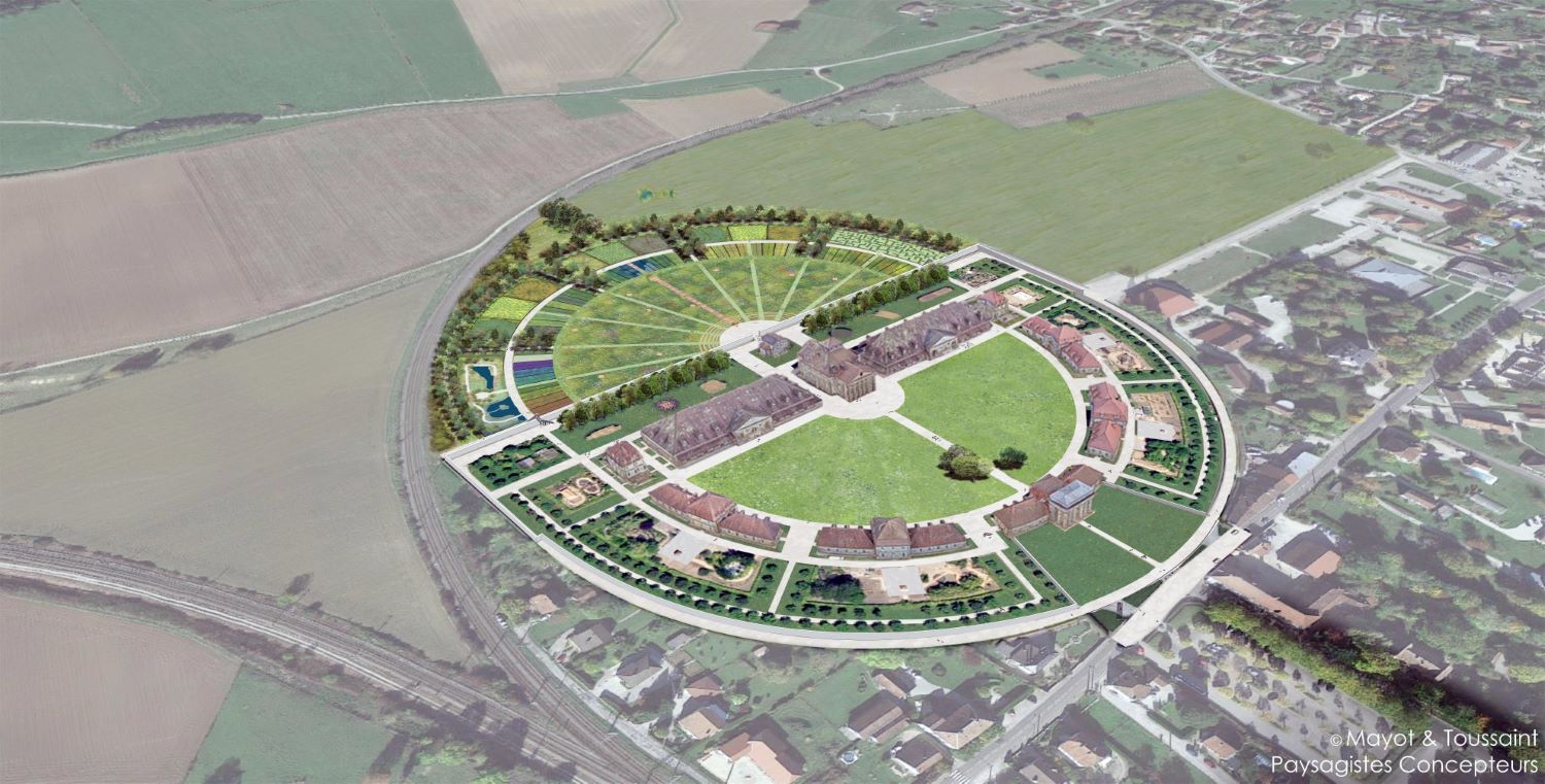 For the first time, a plant and landscape development will reveal to the general public the universal value of a UNESCO monument that had remained largely invisible until now (since the Ideal City of Chaux remained a paper project in Ledoux's architecture treaty published in 1804). The project « Un Cercle Immense » makes visible, and even visitable for the first time, the initial spirit of Ledoux's project that made so many architects and artists dream after it. It makes perceptible at first glance the reasons why the Royal Saltworks was one of the very first sites to be registered on the World Heritage List.