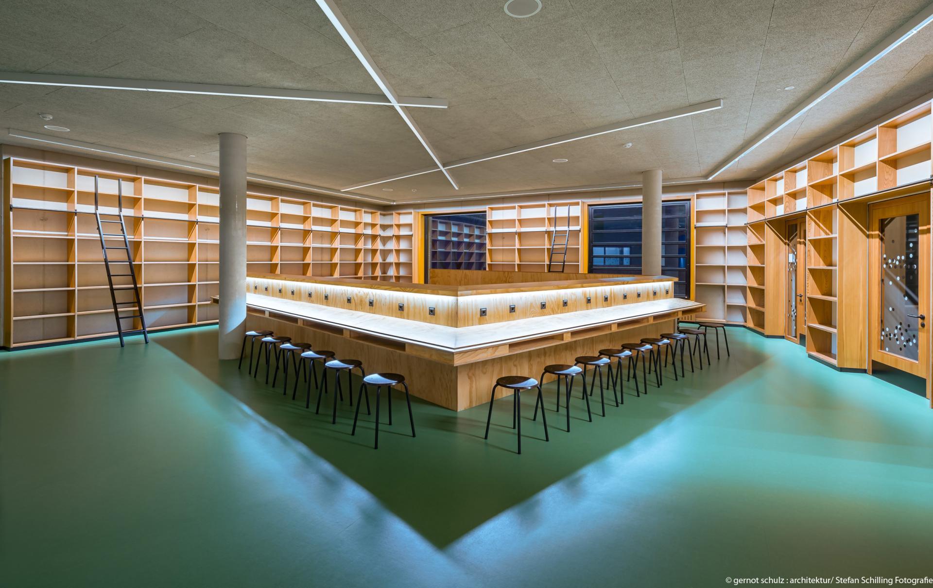 This joint thinking has made synergies possible that would not have been possible to finance and implement for a single school: a cafeteria with a fresh kitchen, a cafeteria with lounge areas, studios for handicrafts, dance, art, a large modern library with reading areas and a kiosk, seminar and retreat rooms. These facilities can be used by everyone.