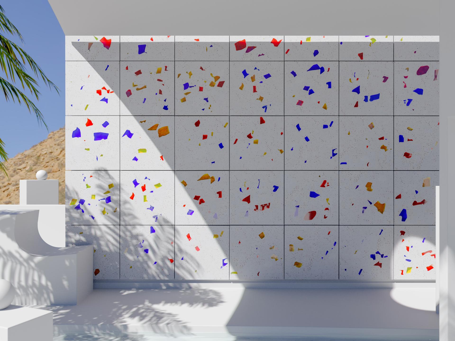 With each remnant we let the past live on in the future, involve the ideas of other cultural creators in our own, spread the idea of a culture of many with each square meter developed.In order to keep these special glass scraps in circulation for a long time, a concrete block recipe was created with attention to local production partners, regional aggregates and transparent supply chains. After a long research and development phase, BASIS RHO could be lauded as the first artistic building material for floors, walls, objects and entire room interiors in January 2020.
