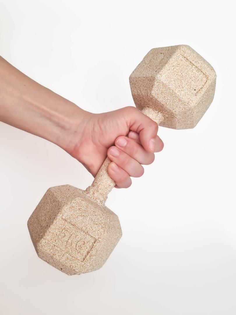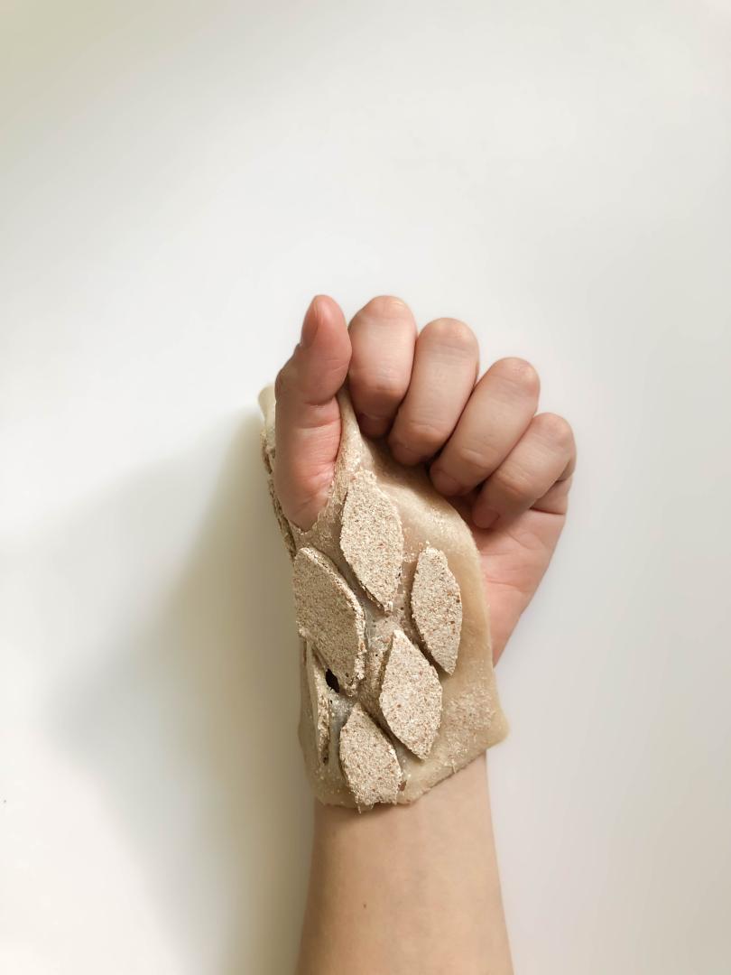 The relationship it creates within the material and the human, encourages to explore its potential to be manufactured using new processes and creating new applications. It has been proven that the material can be mold-casted and 3D printed resulting in the creation of functional products made of organic material residues such as tiles, capsules, masks, containers, a dumbbell... with the possibility of creating more shapes.