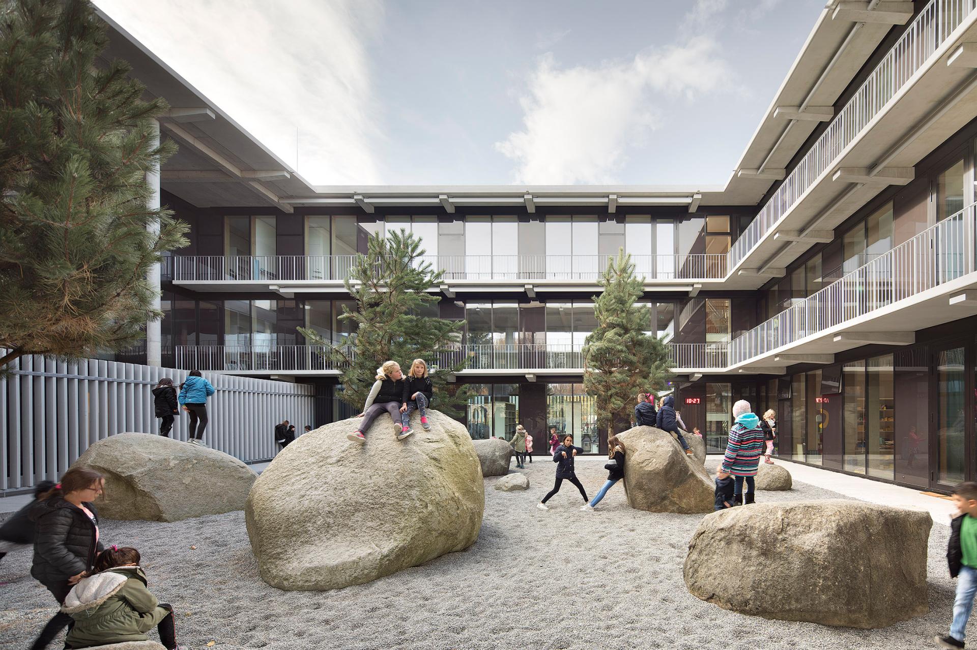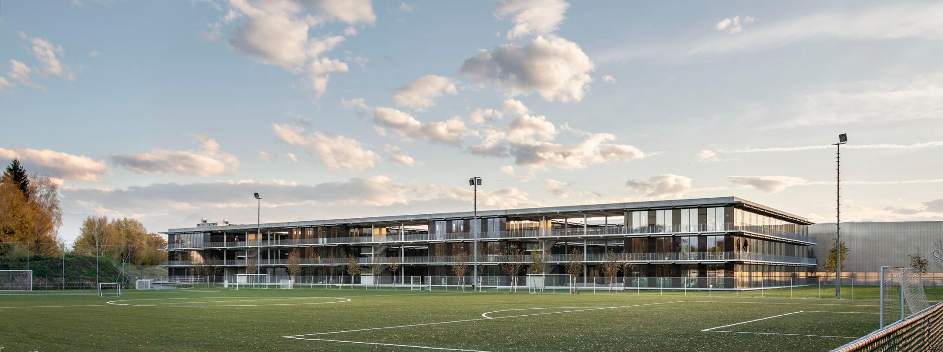 Neighbouring residents were involved in the planning process right from the outset. Screening measures were provided, for instance, to protect the privacy of neighbours’ gardens and the building services installations on the roof were fitted with additional sound insulation. At the same time, the neighbourhood also benefits from newly created offers. Local residents can use the catering facilities provided in the refectory and also buy fresh fruit and vegetables as well as other organic food products at the farm shop.