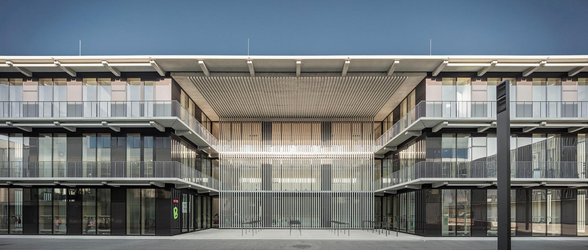 Ultimately, this project has successfully integrated the stringent technical requirements to be met by an energy-plus building into a pleasant, homely working and studying environment. The windows can be opened manually and offer French balconies, while the auditorium has natural wool felt panelling. The appropriate insulation also ensures excellent acoustics.