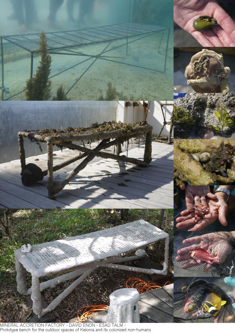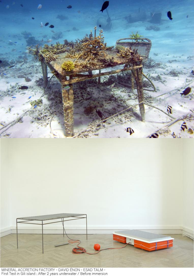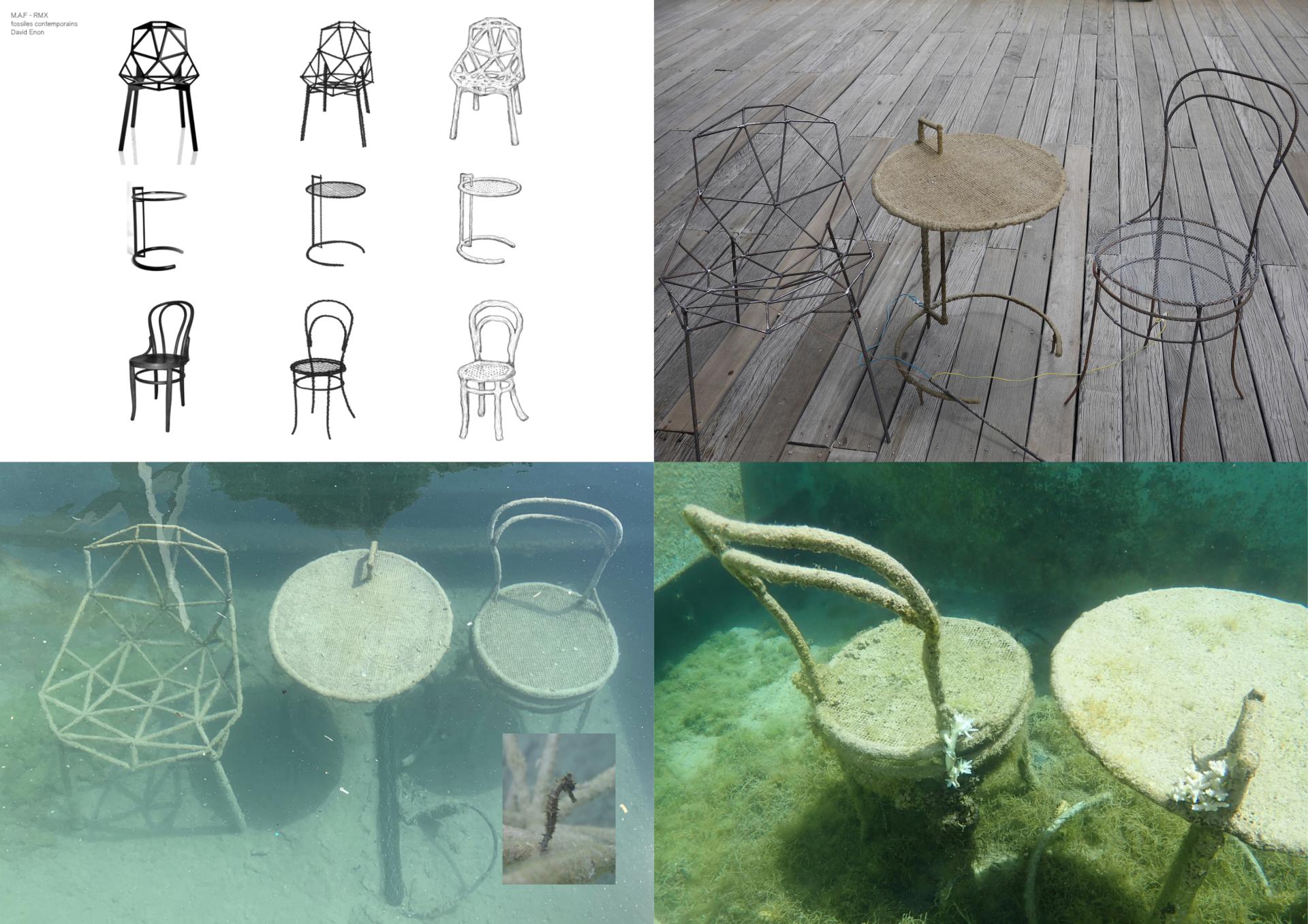 Mineral Accretion Factory is an alternative production system of objects and furniture based on an artificial reef production process developed to restore coral reefs and seabed (fauna, flora).