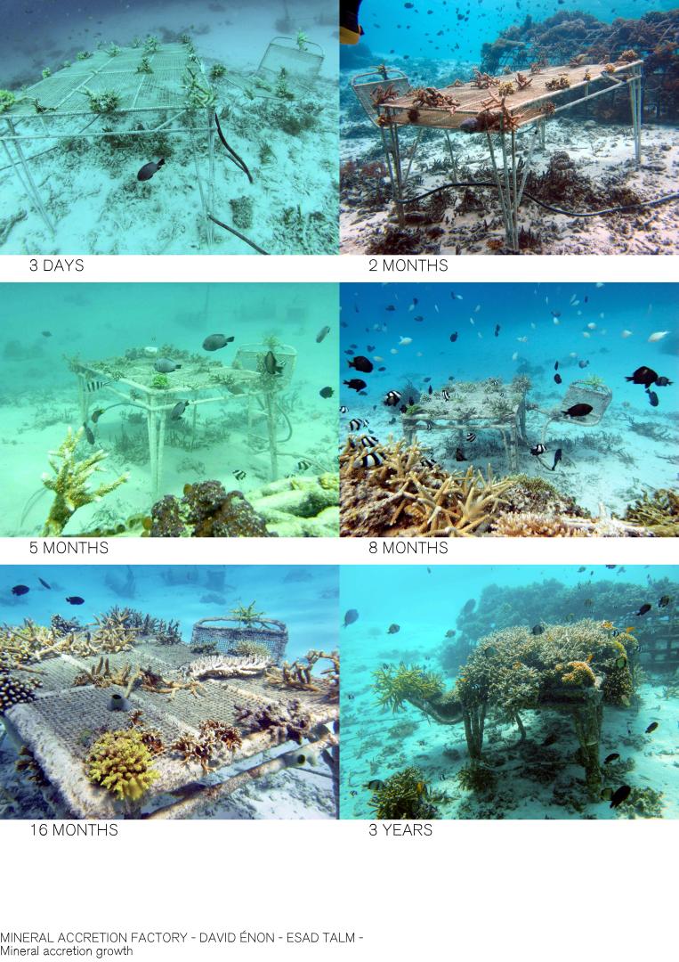 The major innovation consists of creating a means of producing artificial forms in connection with non-human organisms (flora and fauna) in keeping with biological rhythms. It contributes to the reconstruction of damages caused by man and the reconstruction of marine biodiversity. It enables, like any artificial reef, to preserve the coastline and counter the consequences of climate change, notably its direct consequences in the ocean and the disappearance of coral – an essential element for maintaining marine biodiversity.